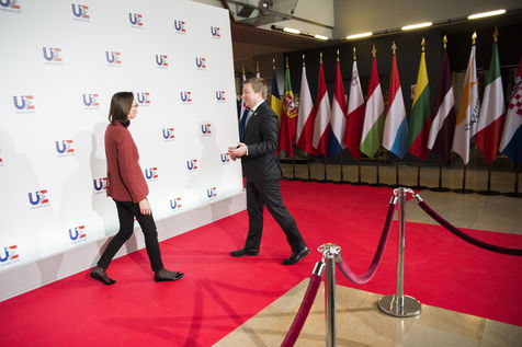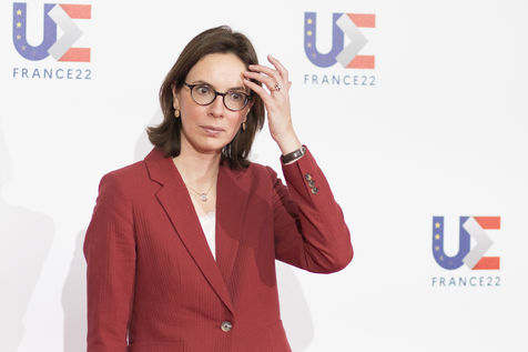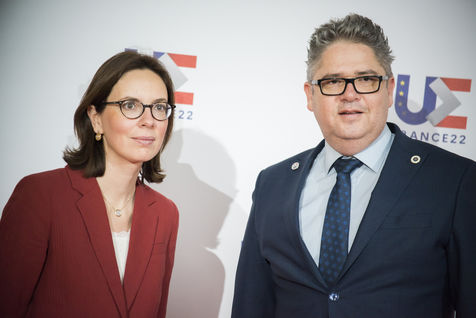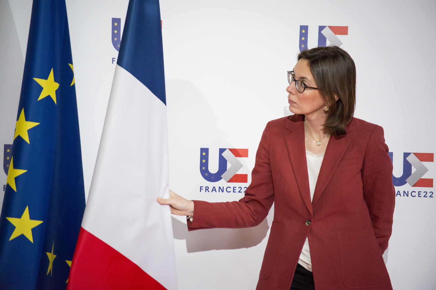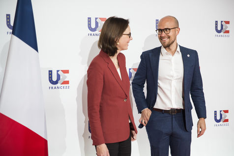 France, Strasbourg, 2022-03-17. La ministre francaise de la transformation et du service public Amélie de Montchalin accueille ses homologues europeens avant une conference dans le cadre de la presidence francaise de l Union Europeenne a Strasbourg. Photographie par Martin Lelievre / APJ / Hans Lucas.