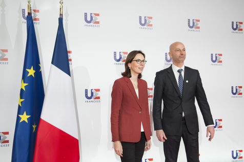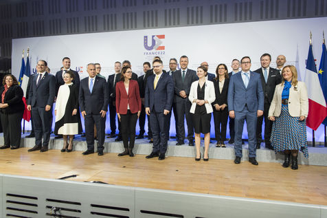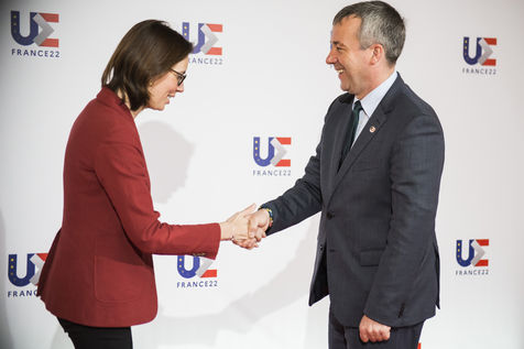 French minister of transformation and public service Amelie de Montchalin greets her european counterparts in Strasbourg amidst the french presidency of the European Union (PFUE).