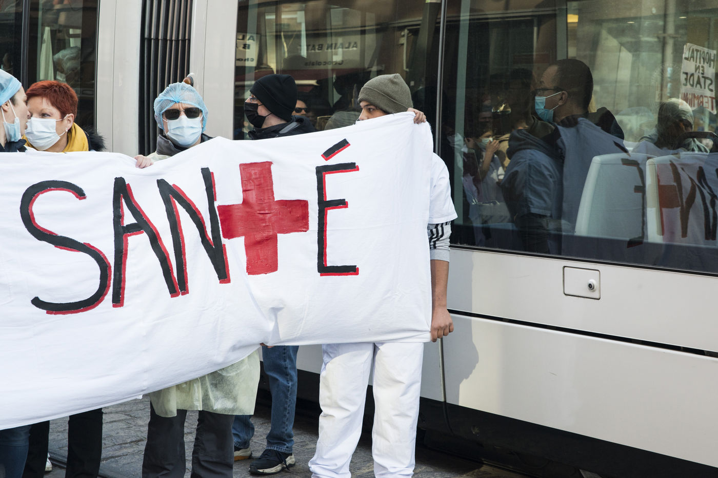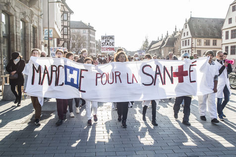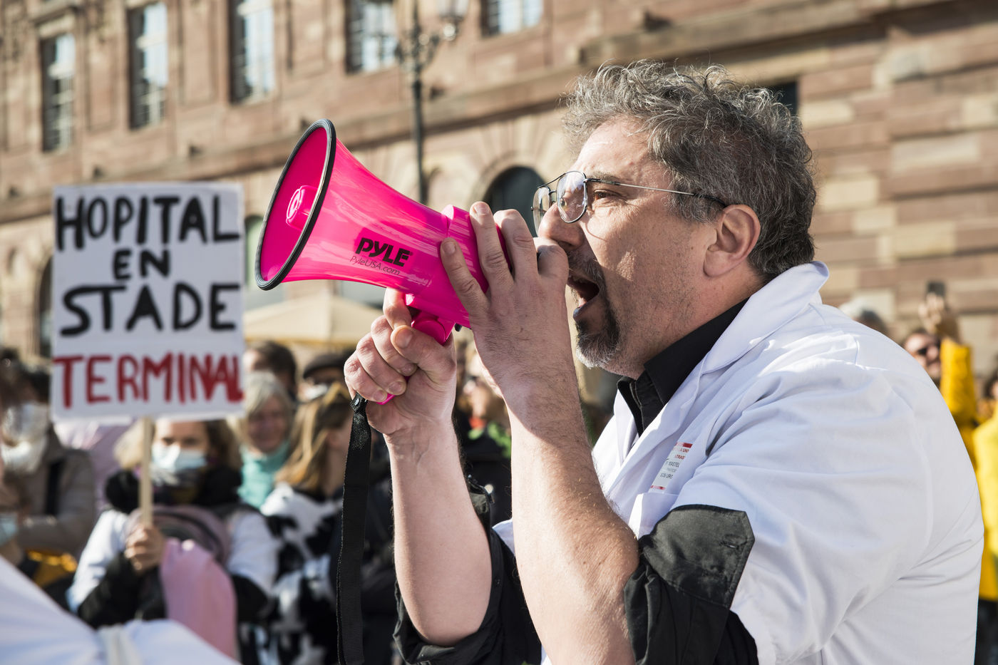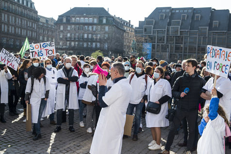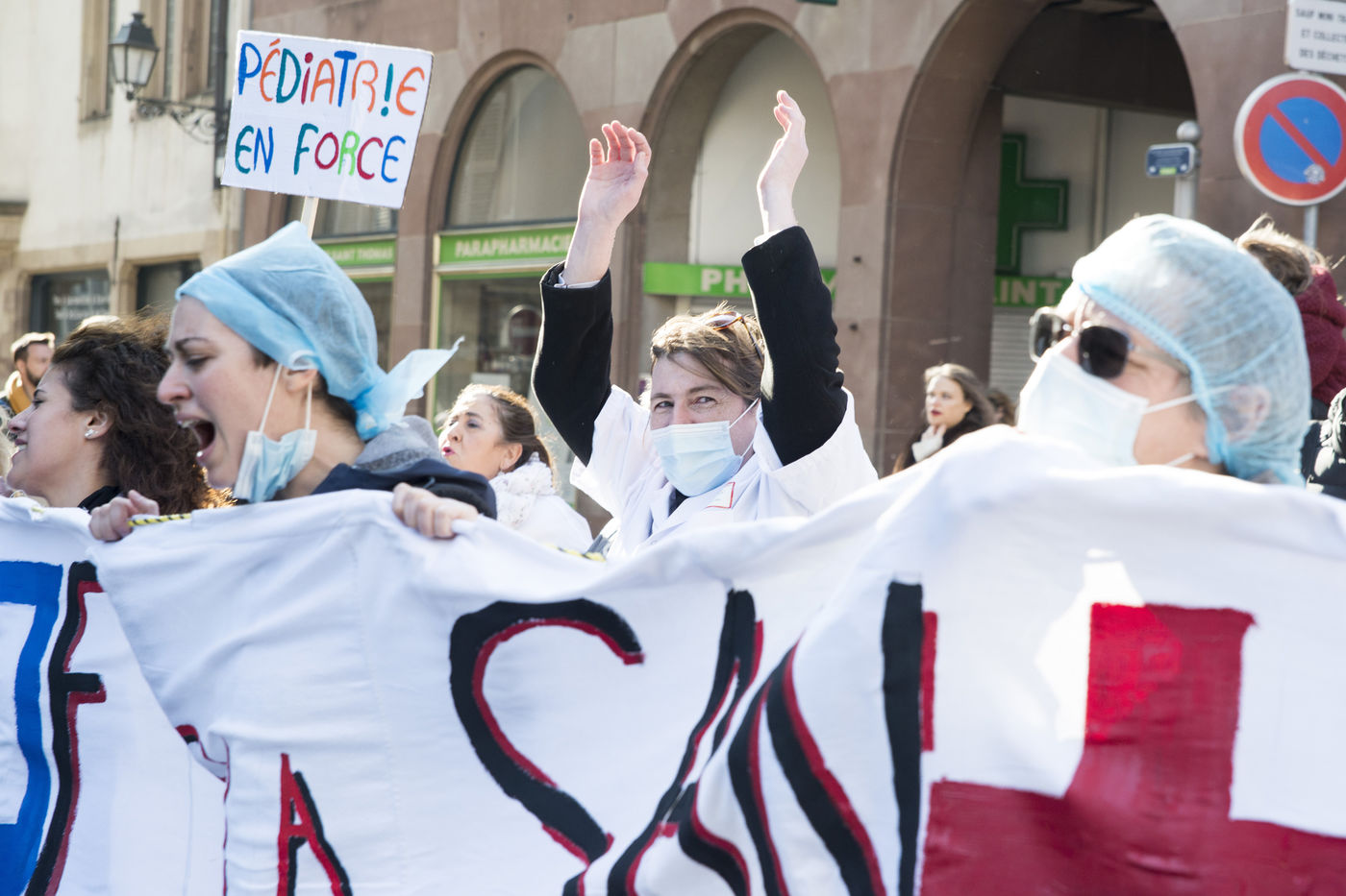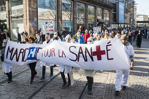 Hospital personel protest to alert on the bad state of the public health services and hospitals in Strasbourg.