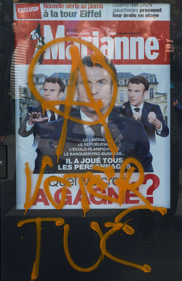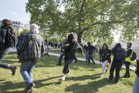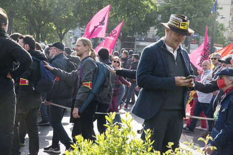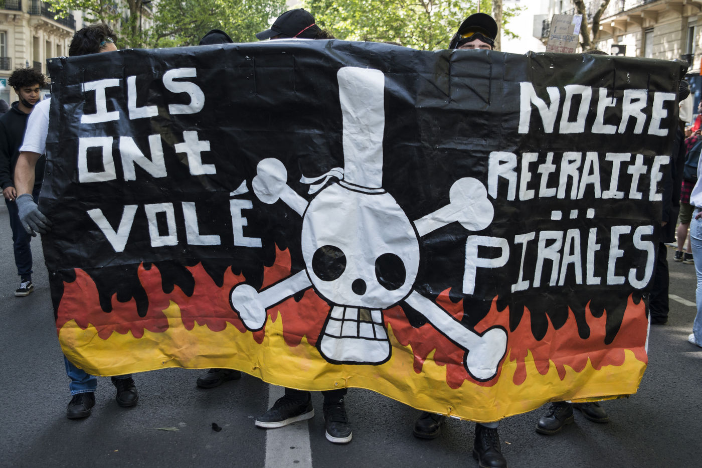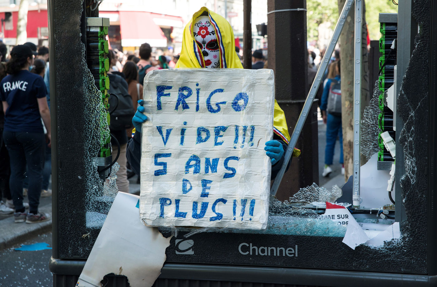 Thousands of protestors demonstrate in the streets of Paris for the international worker's day, a week after the reelection of French president Emmanuel Macron.
