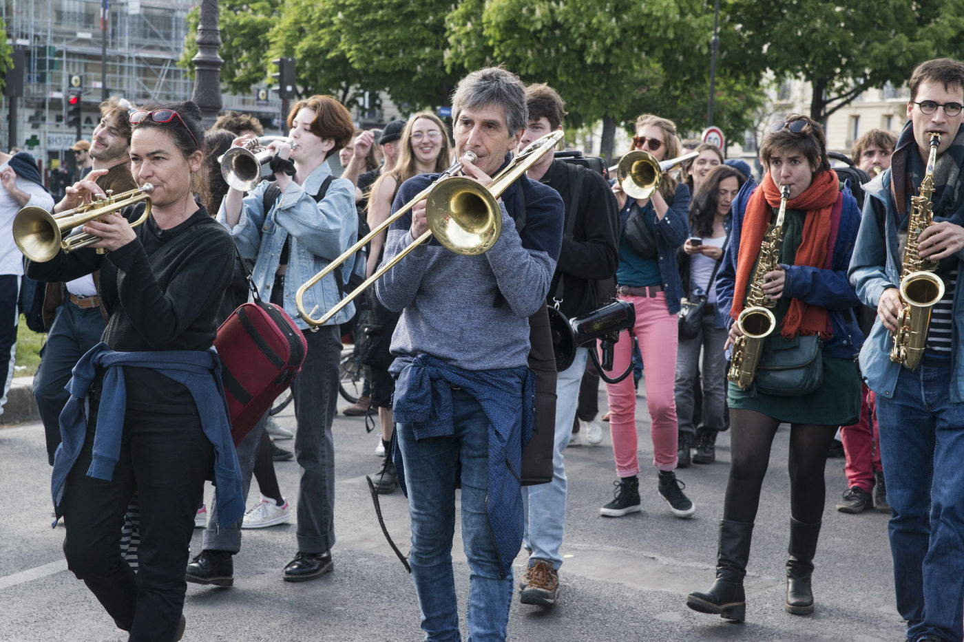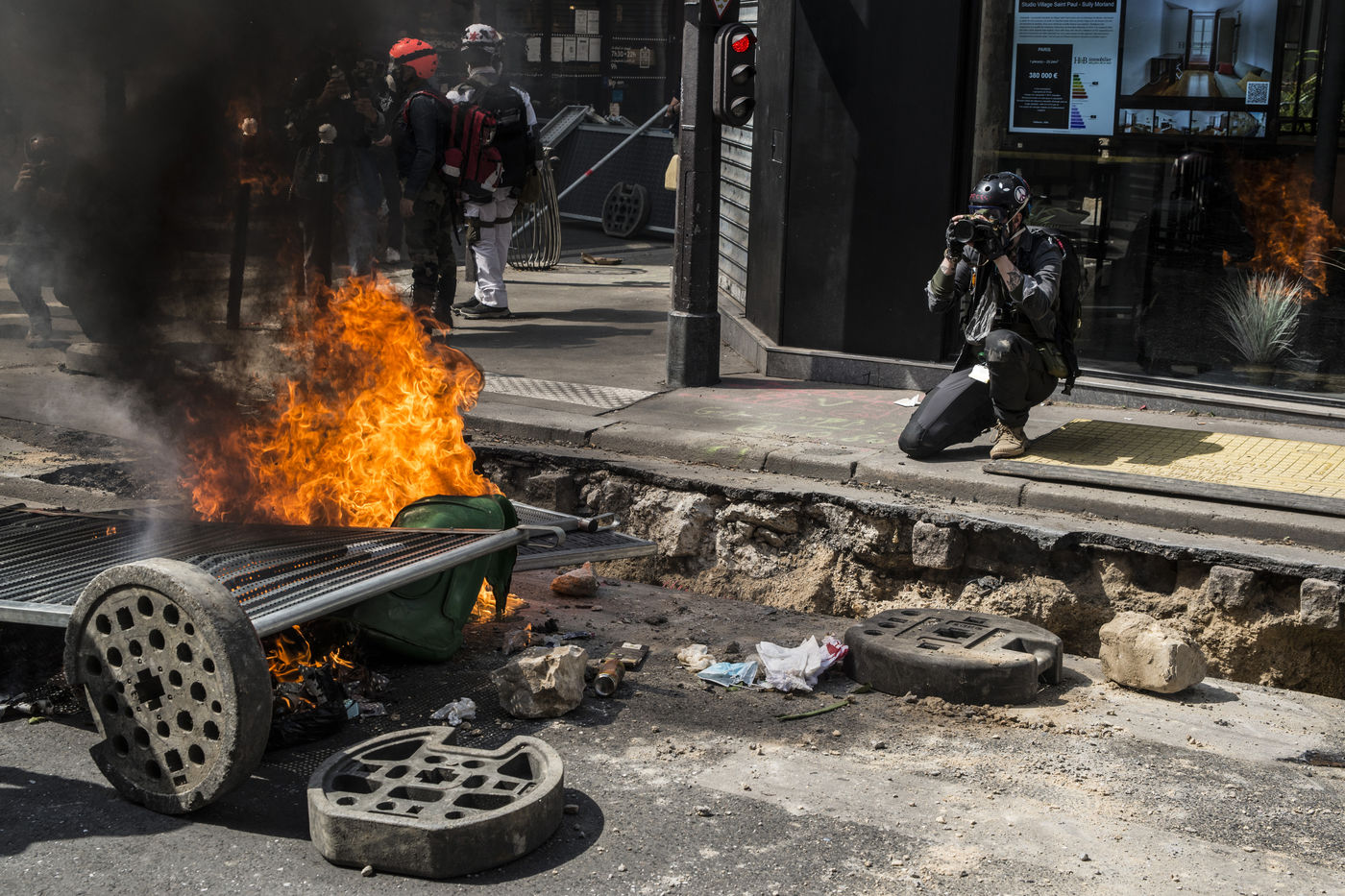 Des milliers de manifestants prennent la rue pour la journée internationale de la lutte des travailleurs et des travailleuses, le 1er Mai, une semaine après la réelection du président Emmanuel Macron.