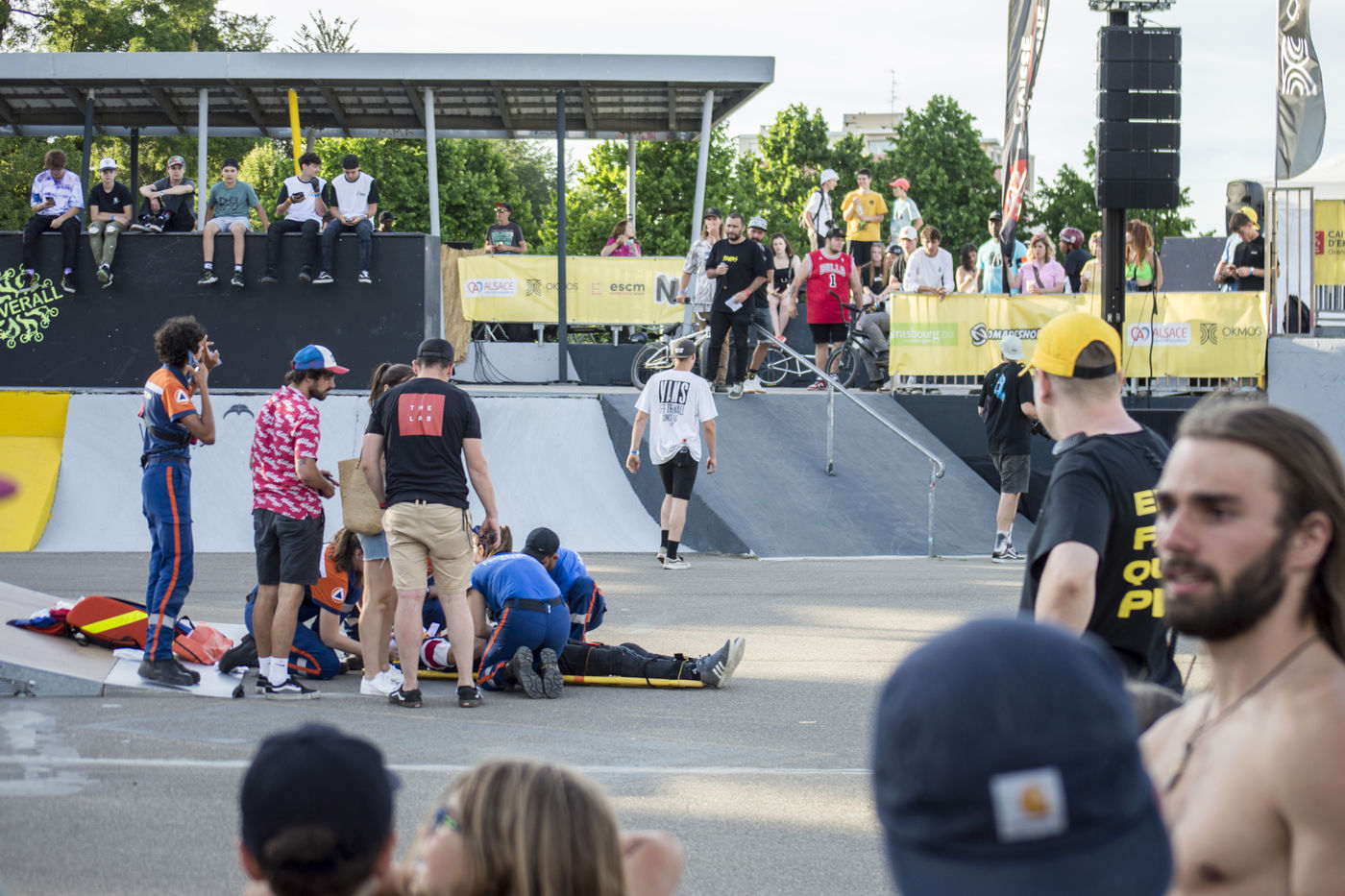 Hundreds of people assist to the second day of the Nouvelle Ligne (NL) Contest, an urban sport competition and urban culture festival in Strasbourg at the Rotonde skatepark.