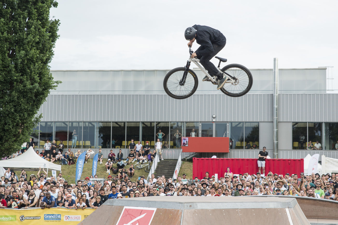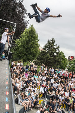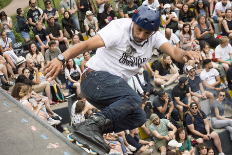 Hundreds of people assist to the third day of the Nouvelle Ligne (NL) Contest, an urban sport competition and festival in Strasbourg at the Rotonde skatepark.