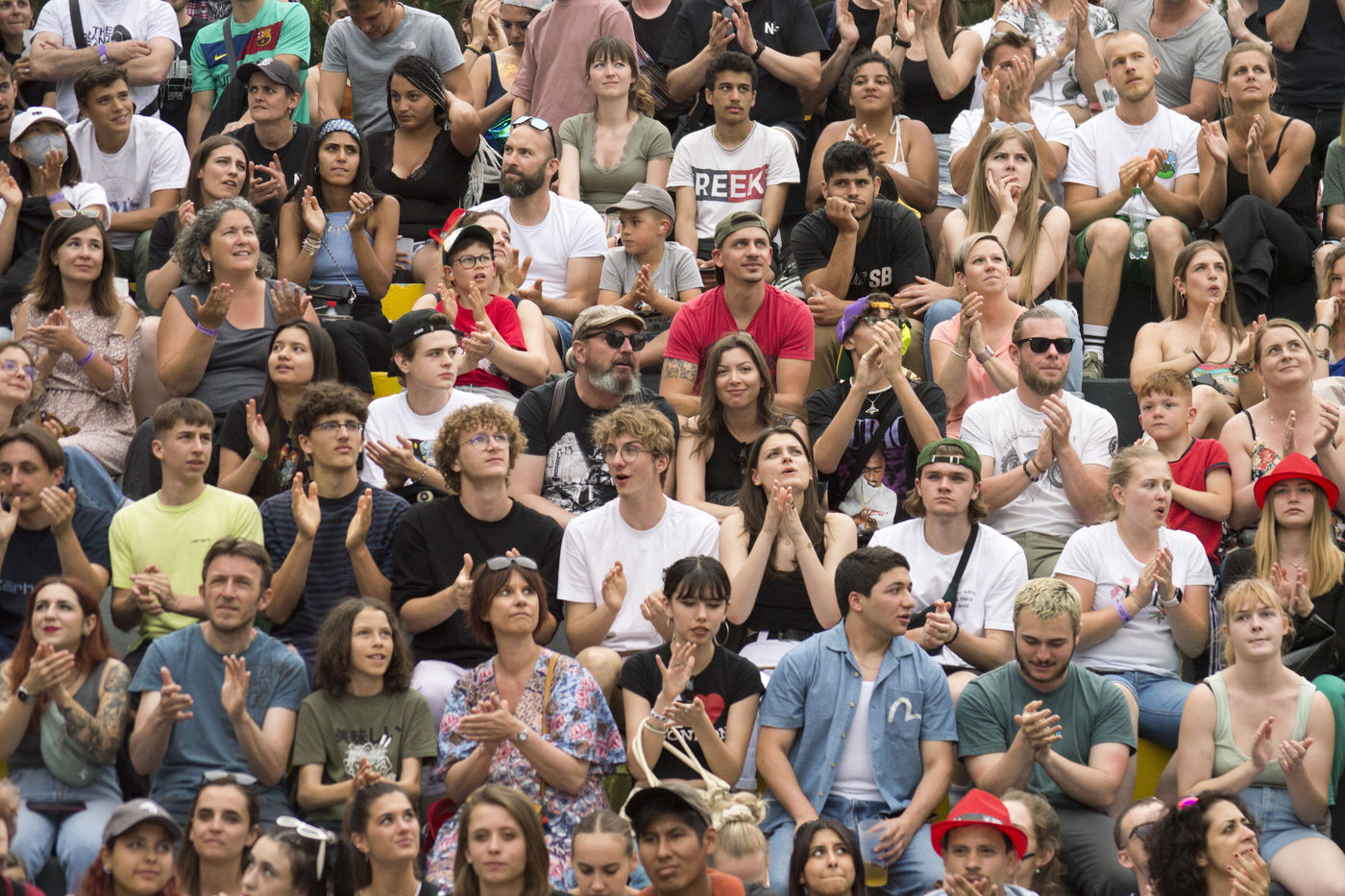 Des centaines de personnes assistent au troisieme jour du NL Contest (Nouvelle Ligne), un festival et une competition de sports urbains a Strasbourg au skatepark de la Rotonde.
