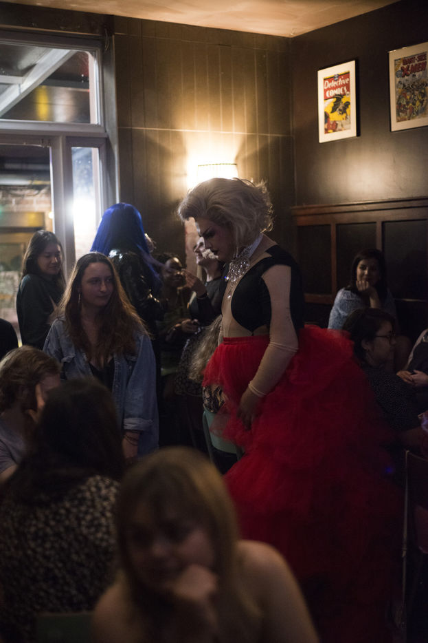 The creative collectif The Coven organised a DragShow at the Cafe Grognon in Strasbourg with drag artists Royniita and Rose Tental and guest artist dragking Helix Sir.
