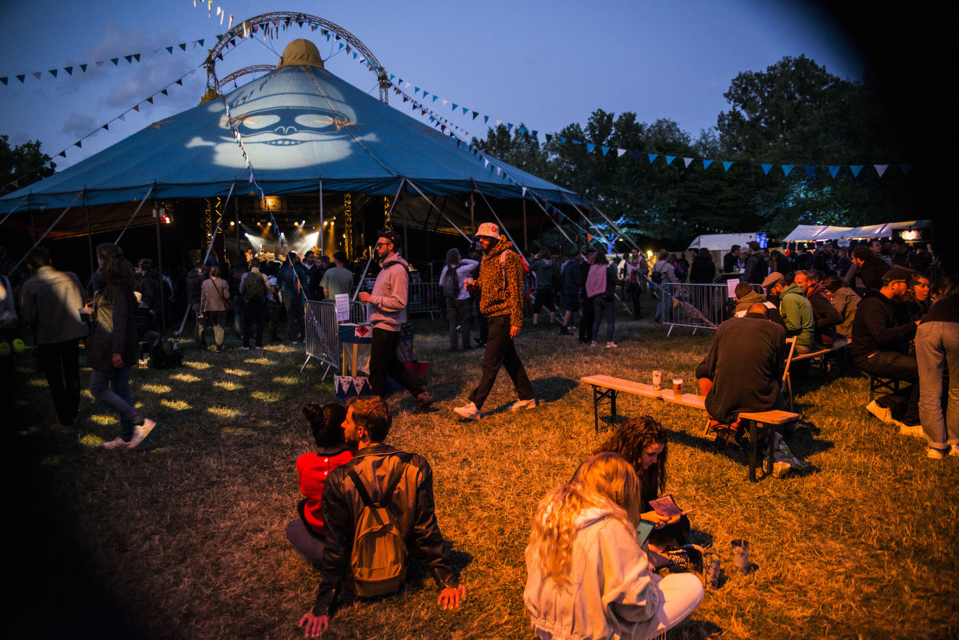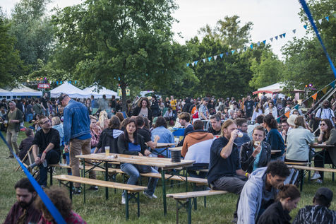 Hundreds of people assist to the second day of the Pelpass Festival at the Jardin des Deux Rives in Strasbourg, for the first edition since the Covid19 pandemic outbreak, with concerts of notably The Guru Guru and Ichon.