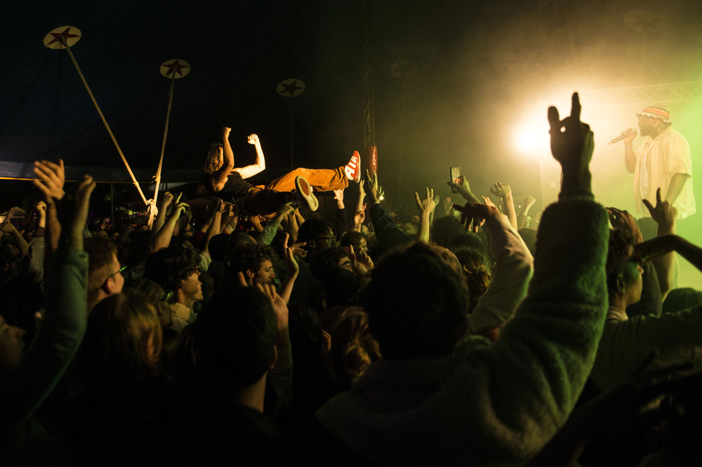 Hundreds of people assist to the third day of the Pelpass Festival in the Jardin Des Deux Rives in Strasbourg with concerts of Aloïse Sauvage, the groupe Makoto San and the swiss rapper Makala.