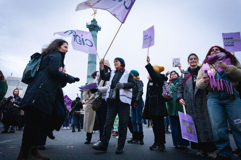 To mark the International Day for the elimination of violence against Women and Gender Minorities, a major march is being organized on November 23, 2024 in cities across France to combat feminicides, sexual violence and all forms of gender-based violence. This series illustrate the gathering in Paris: a march between Gare du Nord and Bastille.