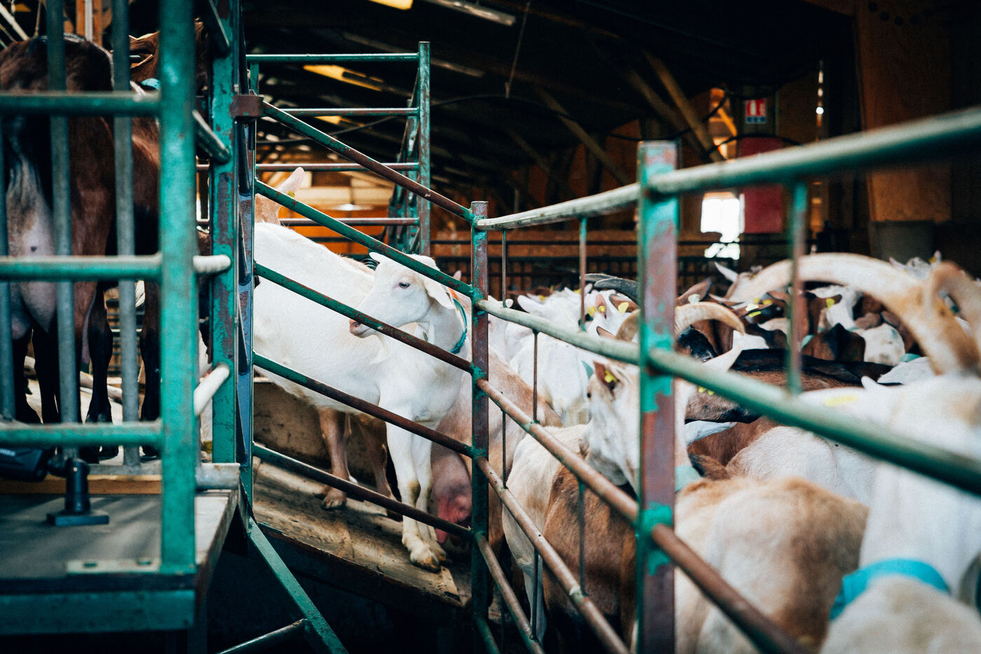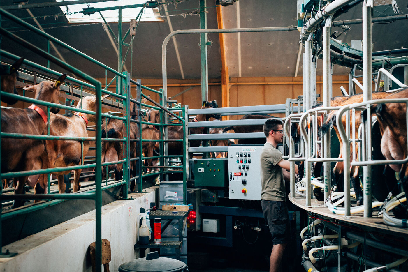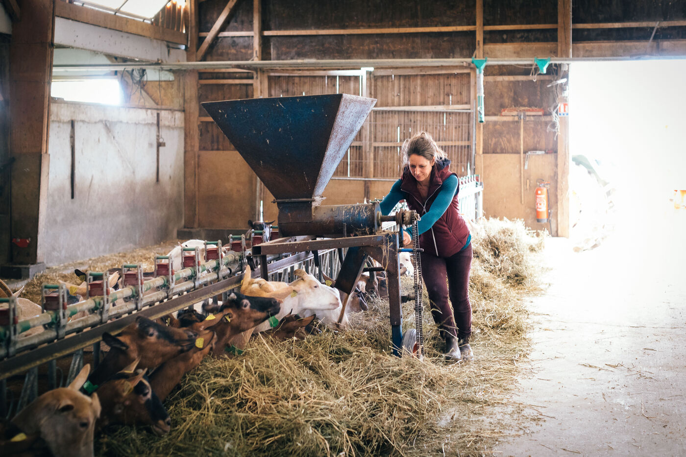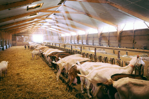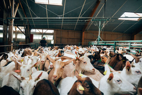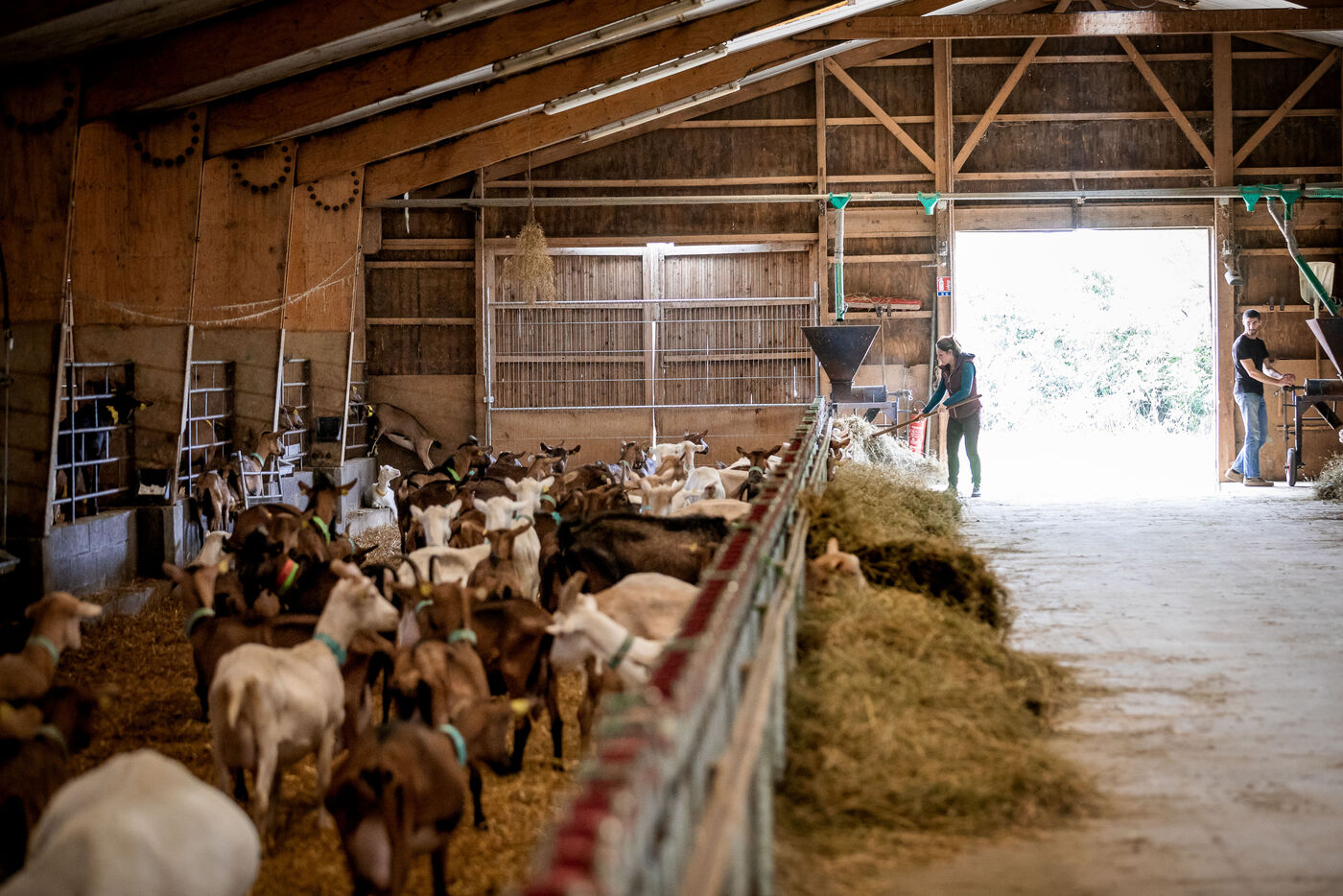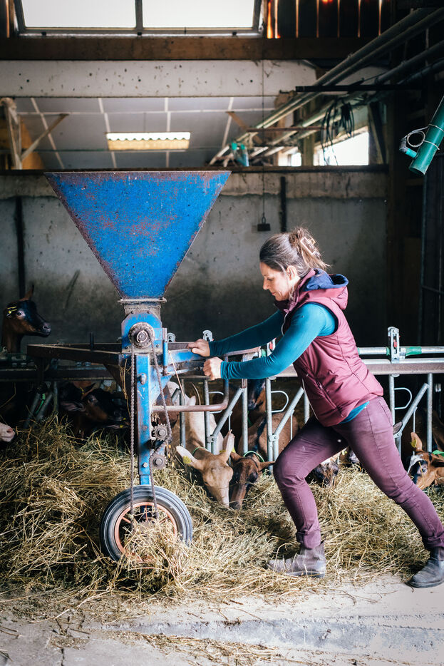 The goats are fed on cereals and forage produced on the farm. Rations are adapted to the needs of the animals according to their age and lactation level.