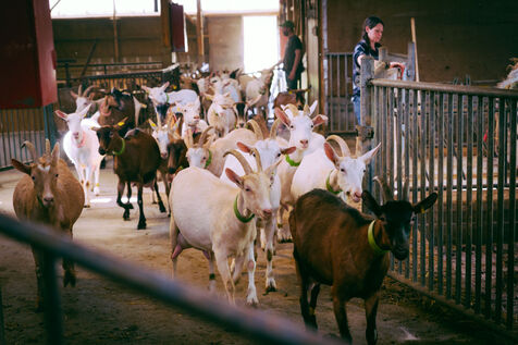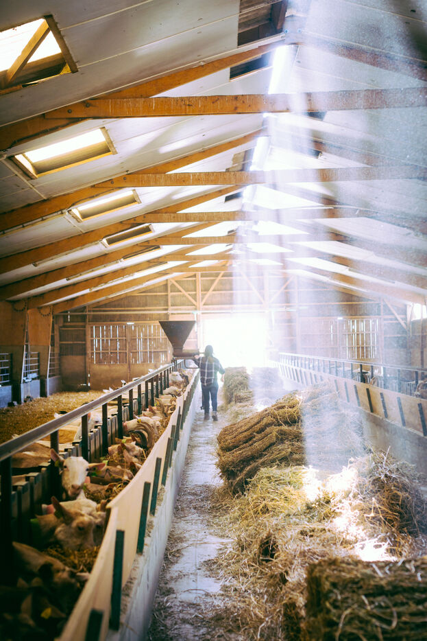 Les chèvres sont nourries à partir des céréales et des fourrages produits sur l'exploitation. Les rations sont adaptées aux besoins des animaux en fonction de leur âge et de leur niveau de lactation.