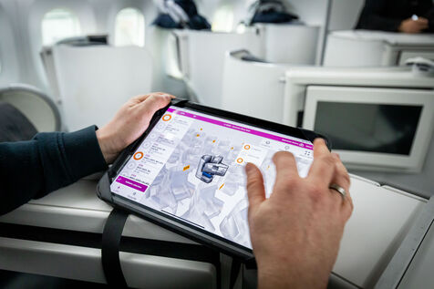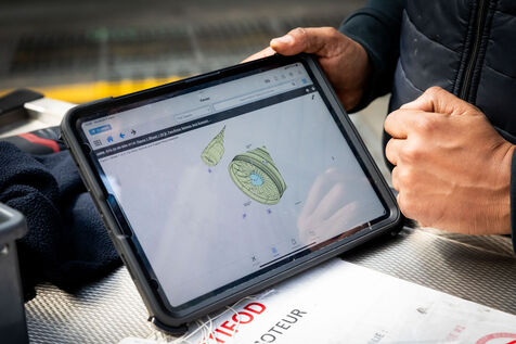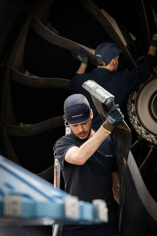 A day with the Air France mechanics who maintain the Boeing B787 in Air France's hangar N°1 at Roissy. Every part of the aircraft is meticulously inspected, and some parts are dismantled (like this engine, to be overhauled and cleaned). Sometimes it's necessary to change parts (in the cabin or on the engines), like changing the window. Each part of the aircraft is visible in a completely unstructured way on a tablet, which simplifies the overall vision of each element and makes it easier to order the parts to be changed. Each gesture must be extremely rigorous and precise.