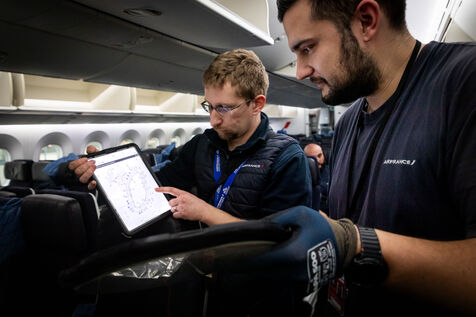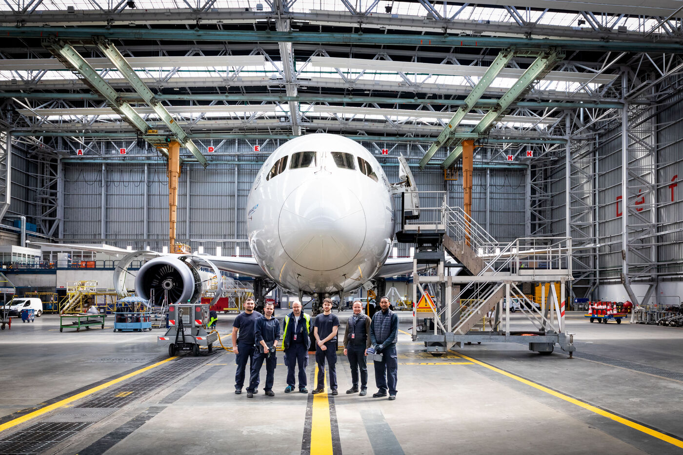 Portrait des mécaniciens de maintenance sur le Boeing B787 Air France