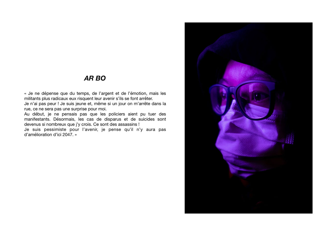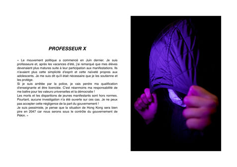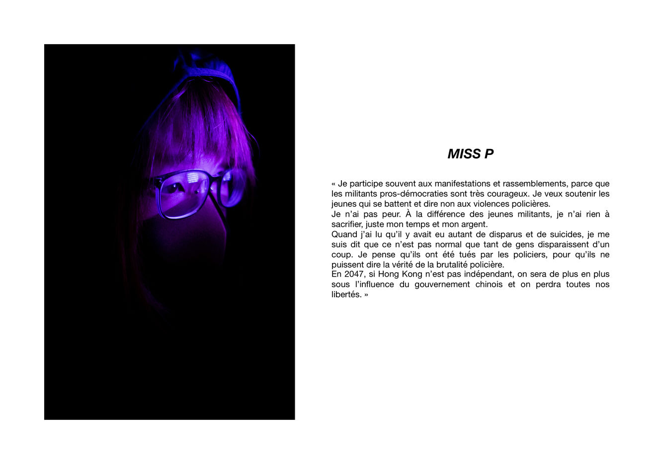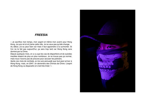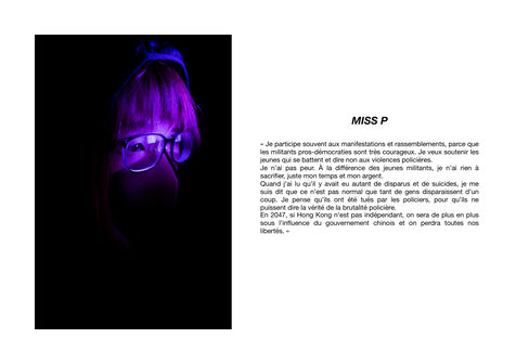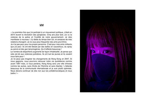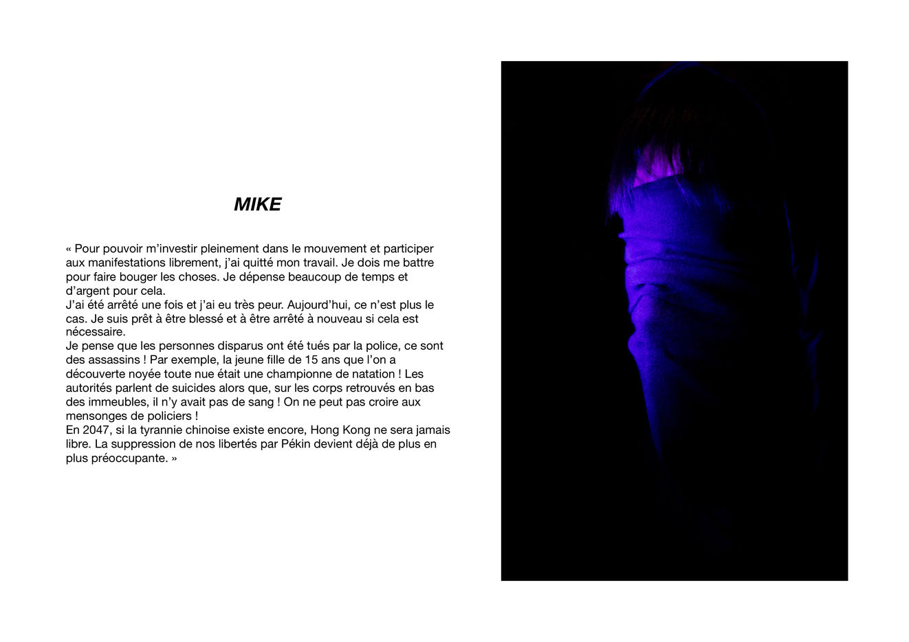 Thus, this documentary project mixing photographic portraits and interviews aims to give a voice to Hong Kong activists on these issues while allowing them to present themselves under a pseudonym and hide their identity, once again representing the fear they feel.