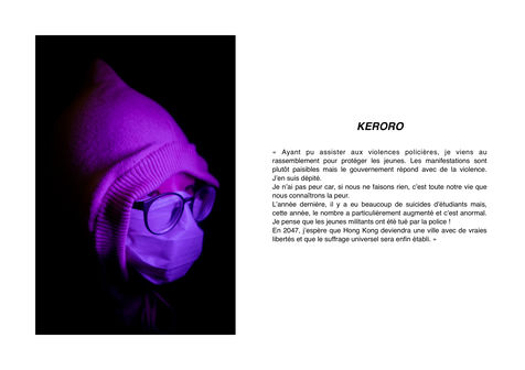 Ainsi ce projet documentaire mêlant portraits photographiques et interviews vise à donner la parole aux militants hongkongais sur ces questions tout en leur permettant de se présenter sous un pseudonyme et de cacher leur identité représentant à nouveau la peur qu'ils ressentent.