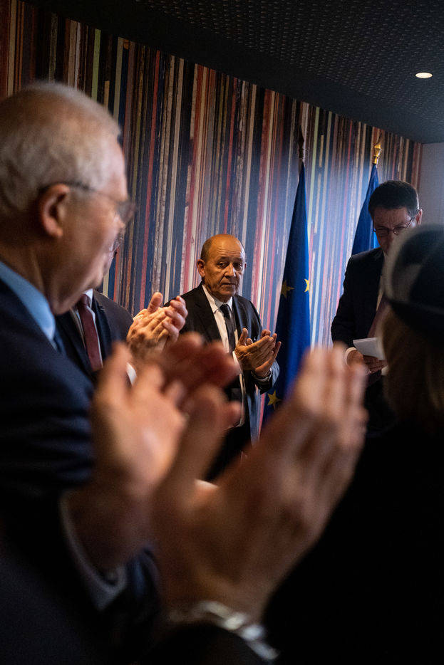 Jean-Yves Le Drian, ministre de l'Europe et des affaires étrangères, et Amélie de Montchalin, secrétaire d'État chargée des affaires européennes, prennent part à l'inauguration du Centre de formation de la compagnie Brittany Ferries à Saint-Malo.