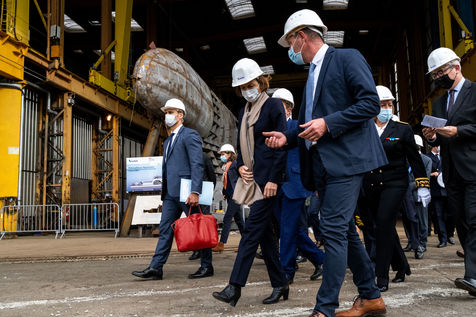 Florence Parly visits the naval and aeronautical defence shipyards in Brittany
