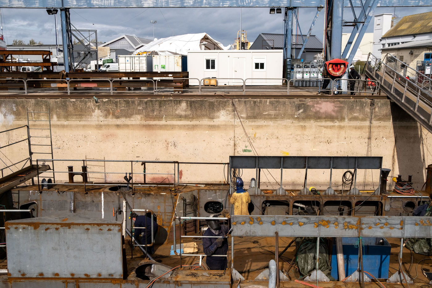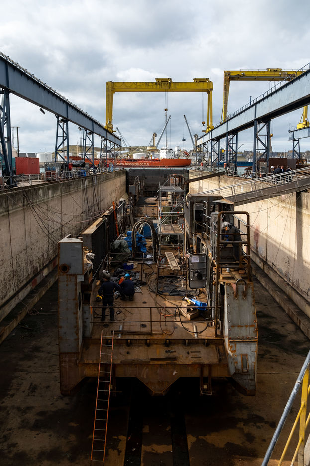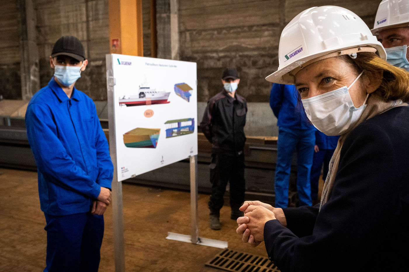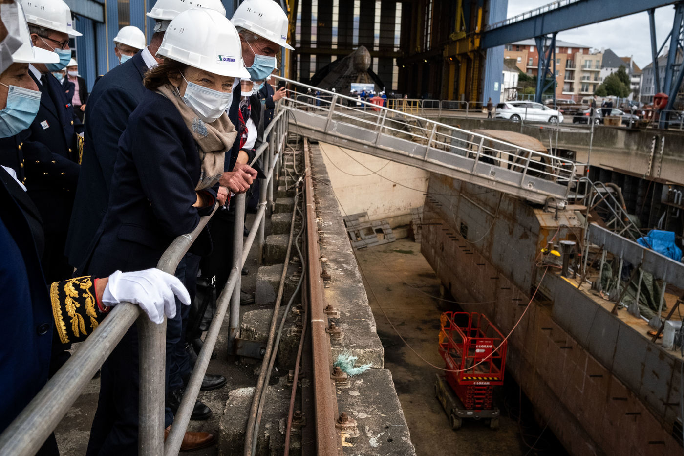 La ministre des Armées se rend d'abord au sein de l'entreprise SOCARENAM, entreprise française de construction navale, où elle visite le chantier de la construction d'un patrouilleur outre-mer (POM). La conception et la construction des six POM représentent, sur les sites de SOCARENAM et pour ses nombreux sous-traitants en France, entre 500 et 600 emplois hautement qualifiés et non délocalisables.