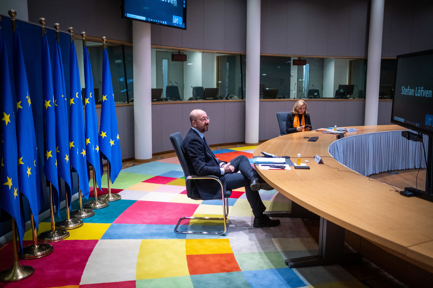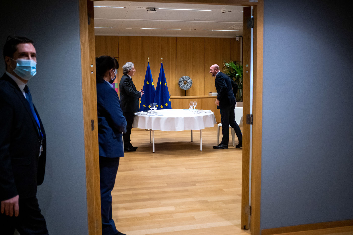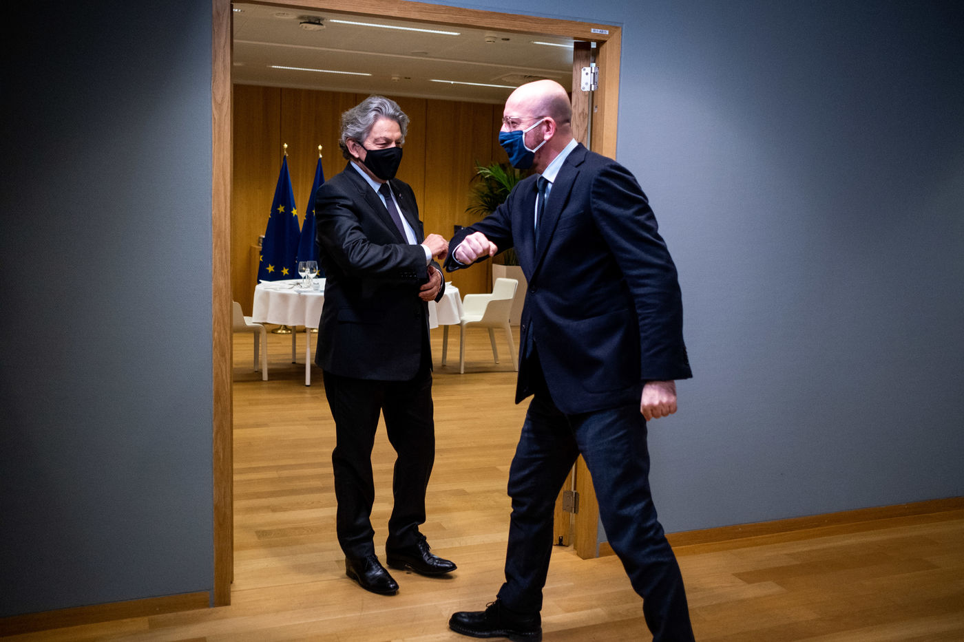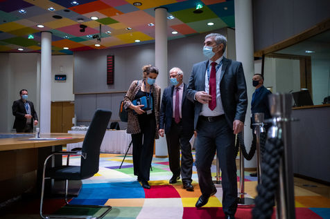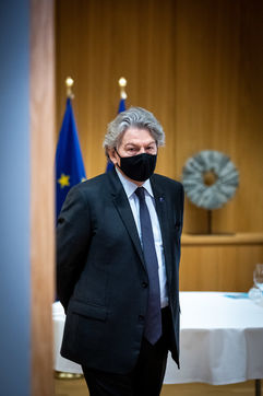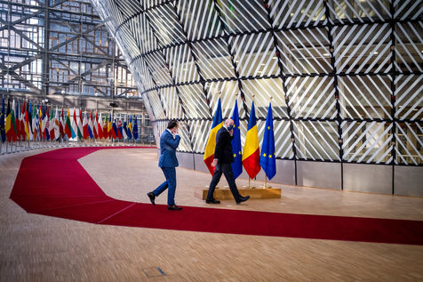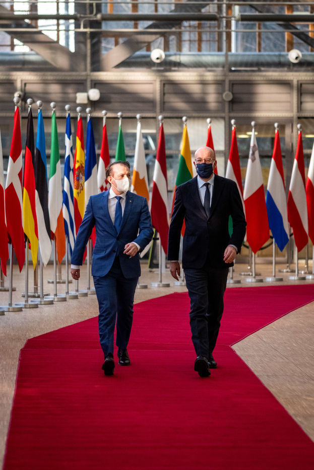 Vendredi 12 Frévrier 2021, le Président du Conseil Européen Charles Michel reçoit Florin Citu, Premier Ministre de la Roumanie, Valdis Dombrovskis, Vice-président de la Commission Européenne, et Thierry Breton, Commissaire Européen au Marché Intérieur.
