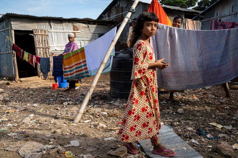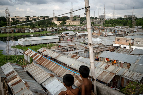 Le dérèglement climatique sera bientôt la première cause des déplacements de population sur la planète. Nous avons déjà pu le constater à l'échelle du Bangladesh en nous rendant dans le bidonville de Duari Para aux abords de Dhaka qui est la capitale du Bangladesh et l'une des villes les plus densément peuplées au monde. Ici, des familles qui vivaient paisiblement de l'agriculture dans le sud du pays s'entassent désormais dans des taudis. Le bidonville étant construit sur pilotis aux abords d'un lac, les inondations restent une menace puisque leurs habitations sont régulièrement immergées pendant les périodes de fortes pluies.