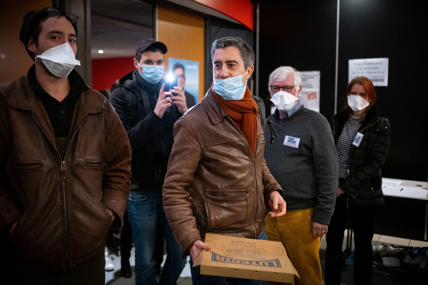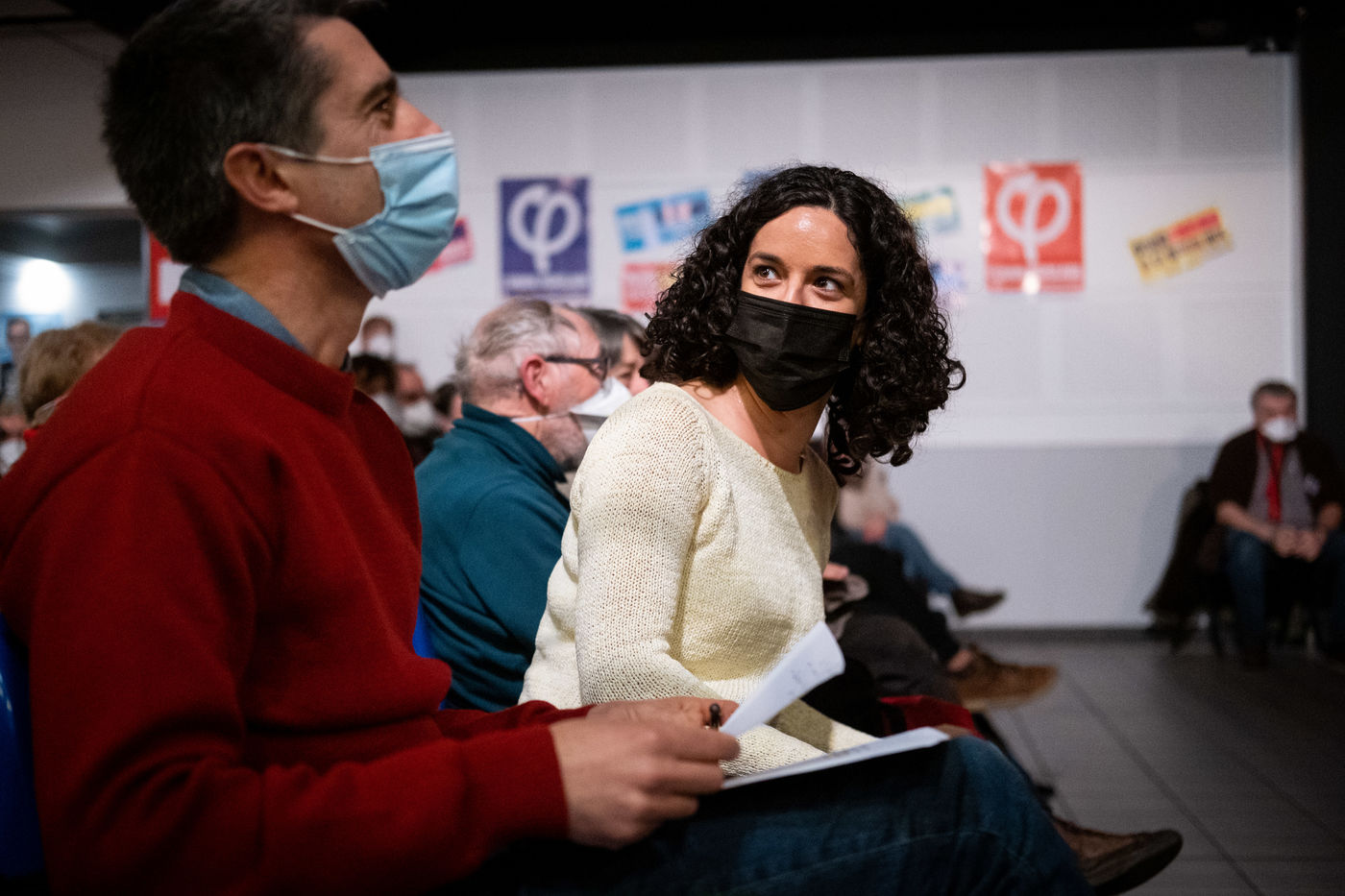 As part of Jean-Luc Melenchon's campaign for the presidential election, France Insoumise meeting in Ploufragan with Francois Ruffin and Manon Aubry.