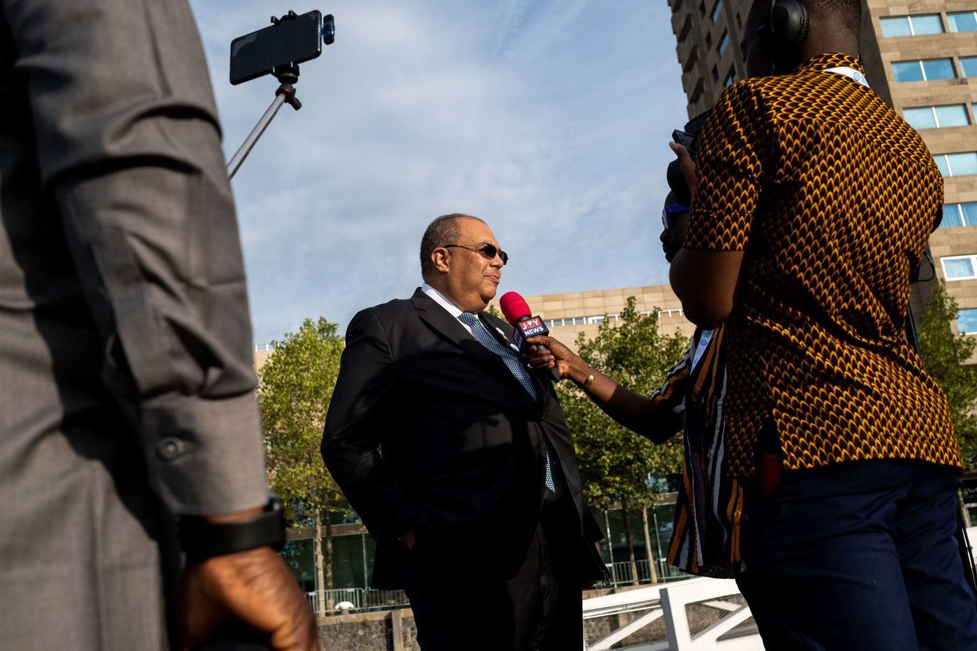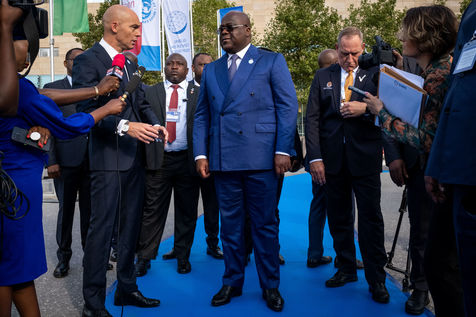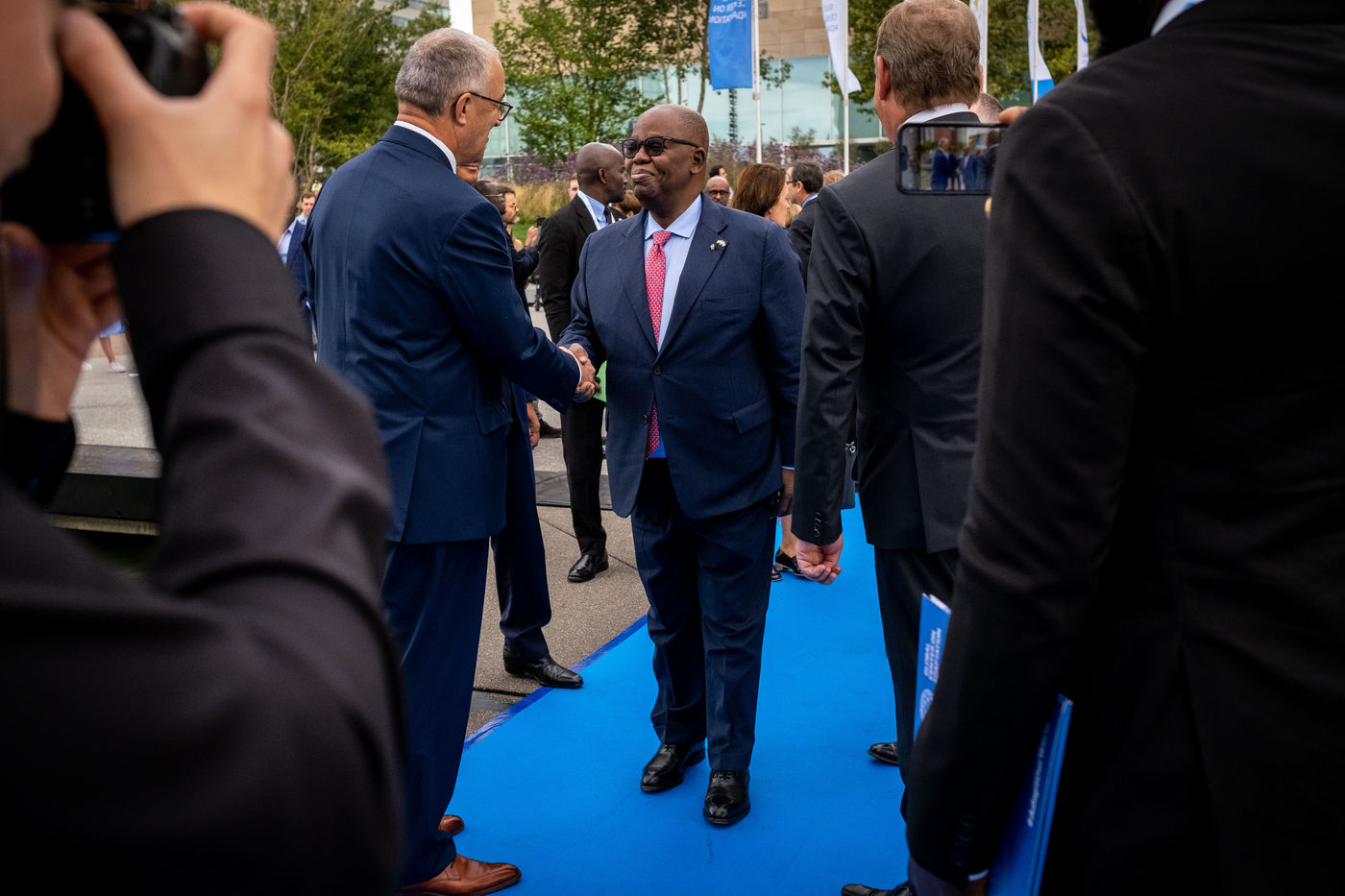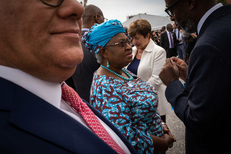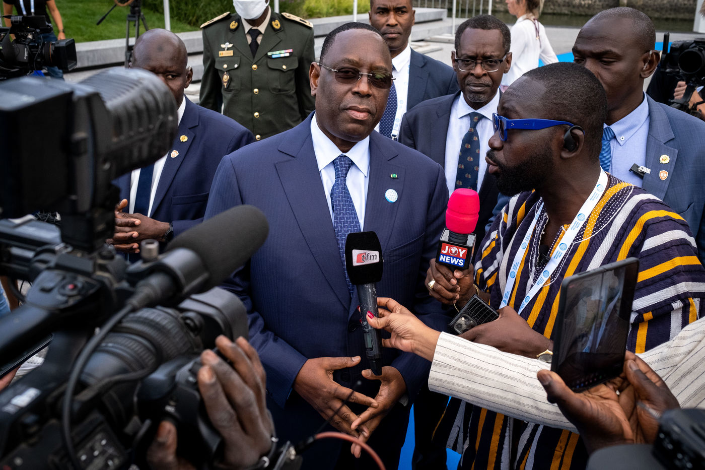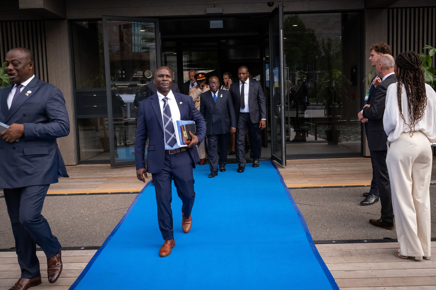 Present are, among others, Macky Sall, President of Senegal and Chairperson of the African Union, Ban Ki-moon , 8th Secretary General of the United Nations, Félix Tshisekedi , President, Democratic Republic of Congo, Mark Rutte , Prime Minister of the Netherlands, Nana Akufo-Addo, President of Ghana, Chrysoula Zacharopoulou, Secretary of State of France for Development, Francophonie and International Partnerships, Ngozi Okonjo-Iweala , Director of the World Trade Organisation, Frans Timmermans, Vice-President of the European Commission.