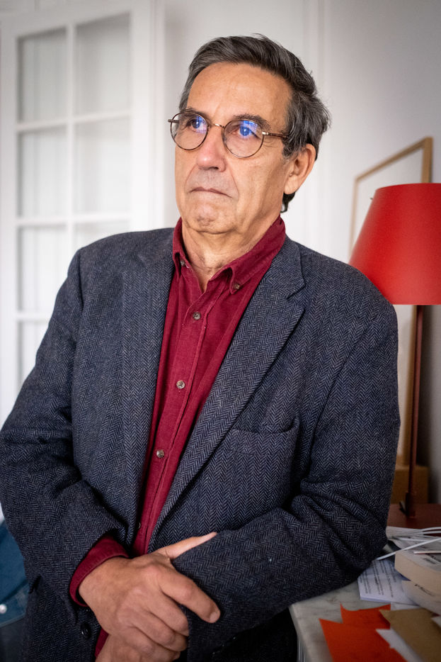 Portraits de l'anthropologue, historien, essayiste, prospectiviste français Emmanuel Todd dans son appartement à Paris.