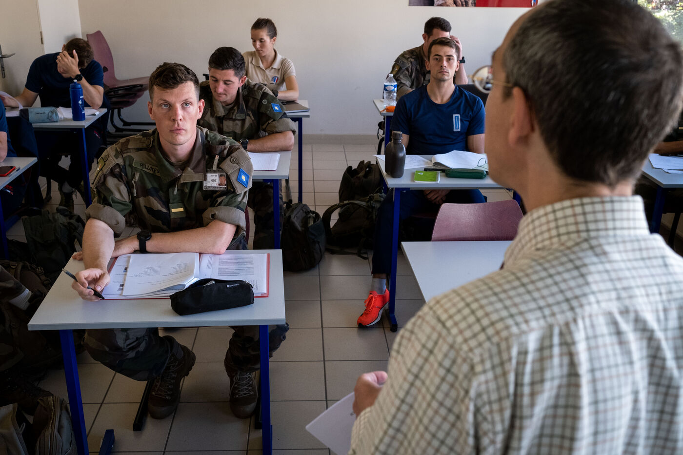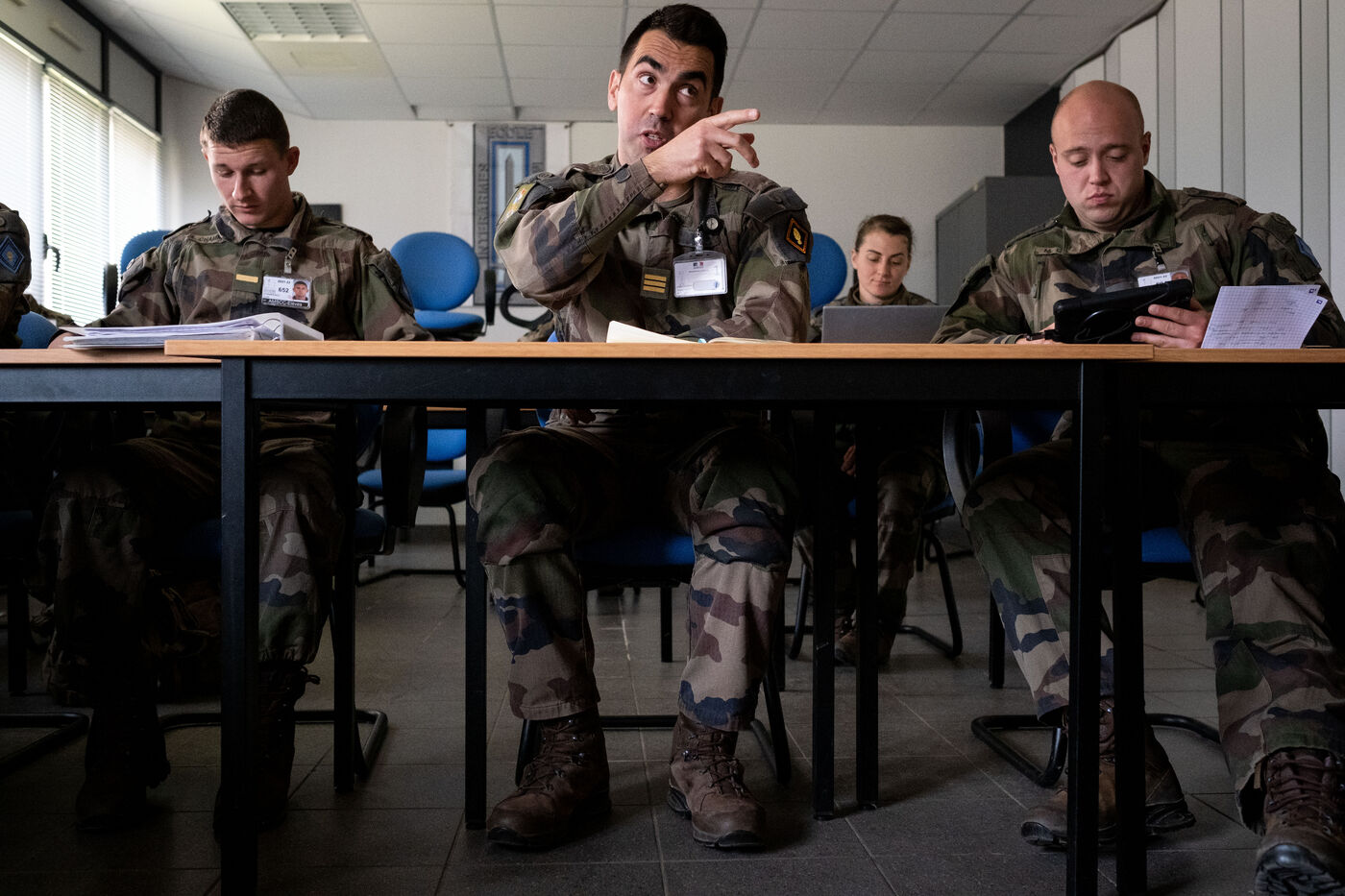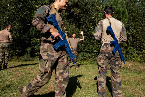 Reportage on the training at the Ecole militaire interarmes in Saint-Cyr Coetquidan in Morbihan, Brittany. The EMIA recruits its students from among non-commissioned officers and non-commissioned soldiers selected by competitive examination. Cadets follow a two-year training course. At the end of the first year, they are appointed to the rank of second lieutenant, then lieutenant at the end of the second year.