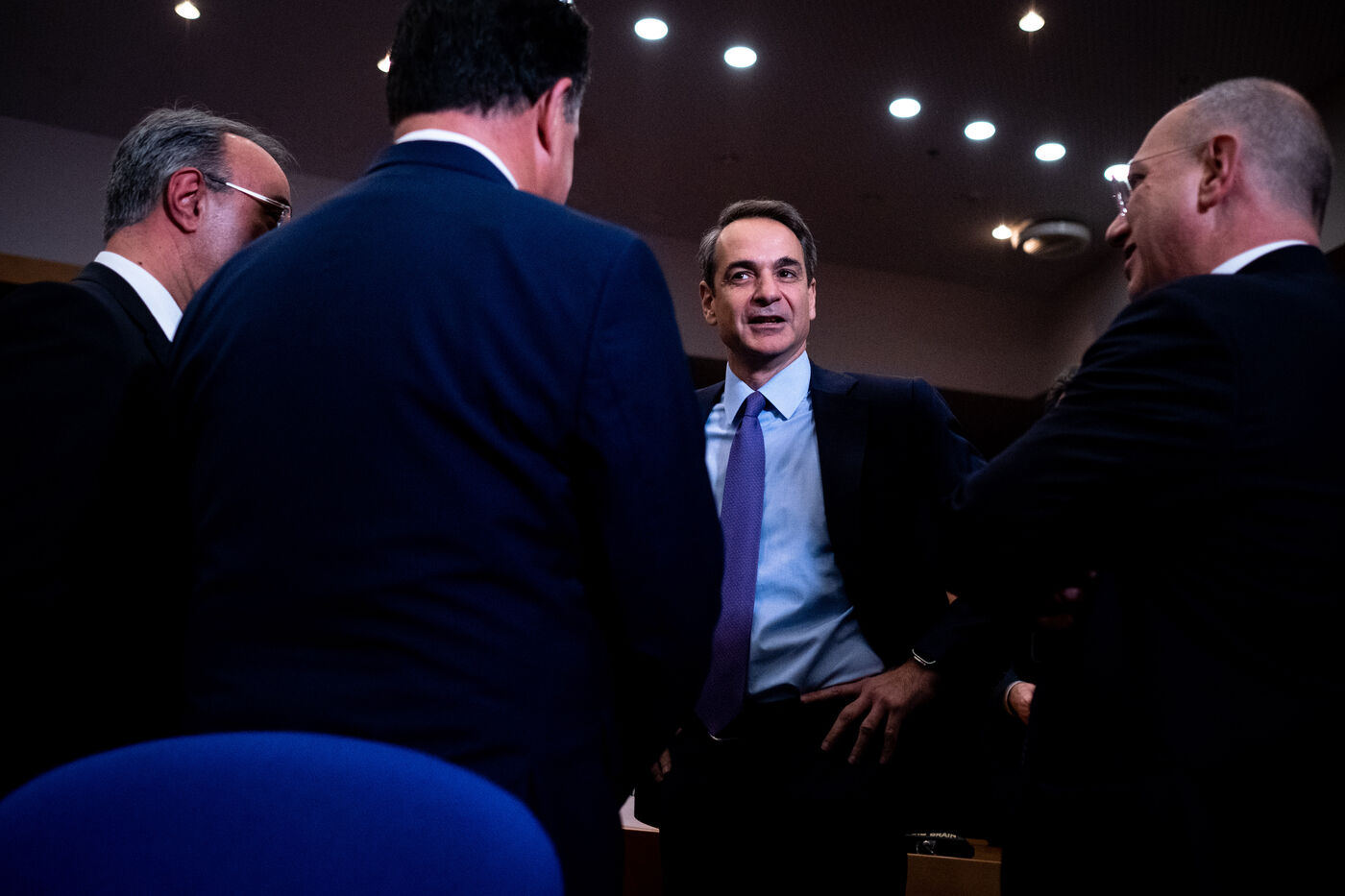 Greek Prime Minister Kyriakos Mitsotakis gives a press conference on his economic policy
