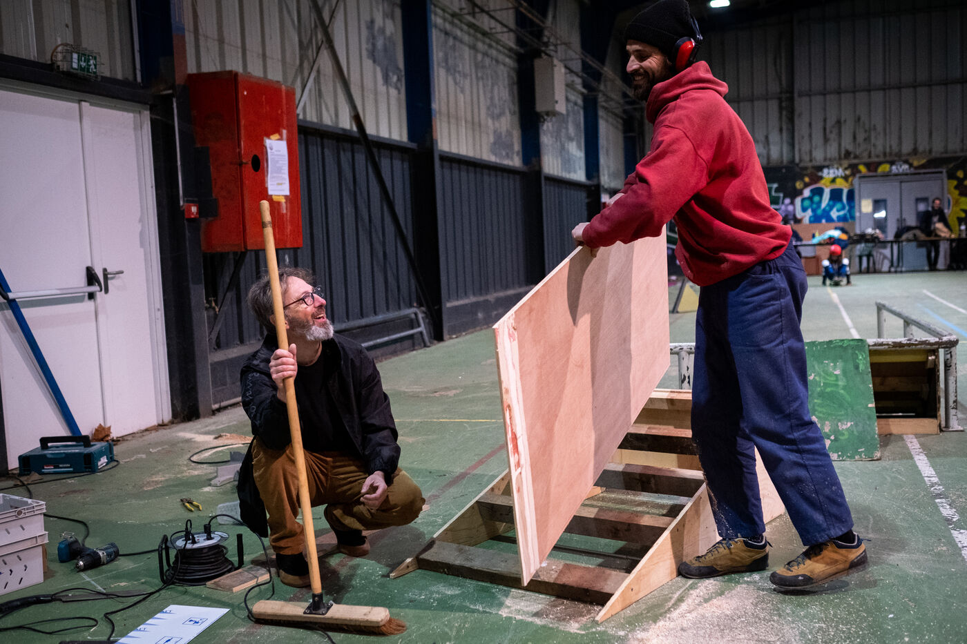 On a Wednesday afternoon in December, Nicolas and Christophe are opening their improvised skatepark for the winter in the Kervizic A Hall of the Parc de Brézillet. It is so cold outside, "below the seasonal average" according to the meteorological jargon heard on television that very morning. "This room is available to us from November to January. Then they rent it out, so we have to dismantle all the modules we have installed there," explains Nicolas, in his forties, who heads the Roulez Jeunesse association. The aim of this association is to propose activities to federate the skaters of the area and also to interface with the public authorities. Thus, this room is the best they have obtained to be able to continue to practice skateboarding during this season despite the humidity of the Breton winters. Nevertheless, it remains rudimentary in view of the lack of waterproofing and the condensation making the floor slippery and therefore somewhat dangerous for the practitioners.