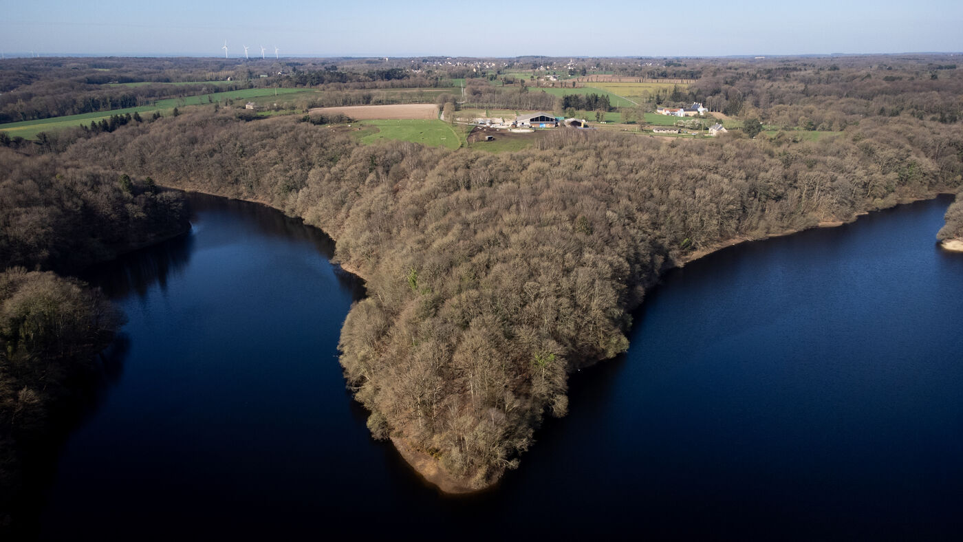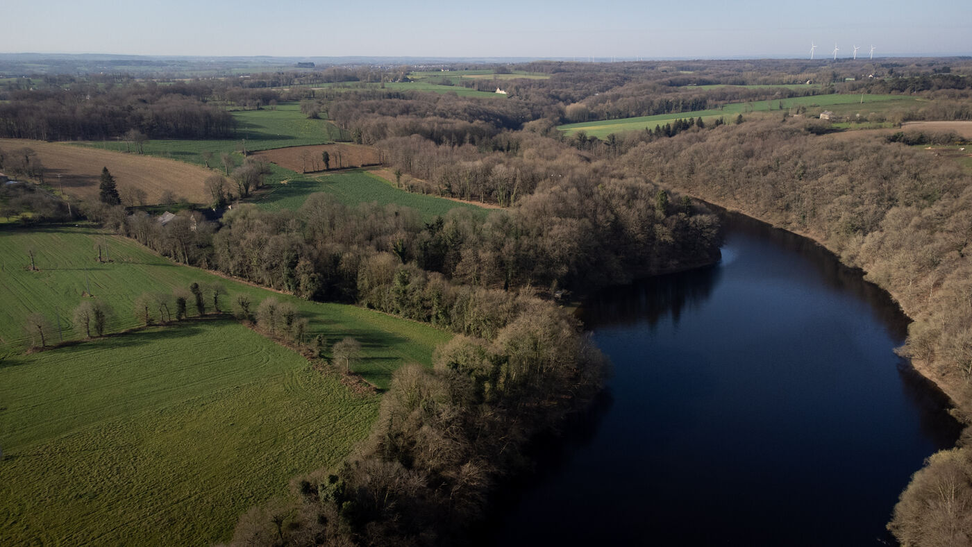 Aerial view of the countryside and the Breton coast.