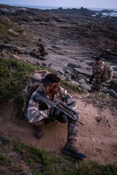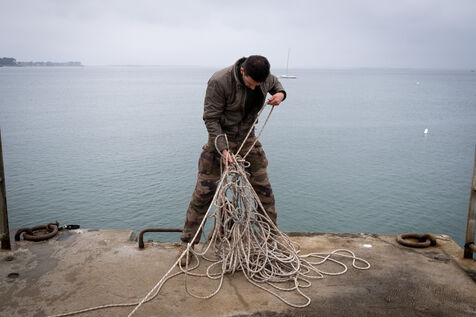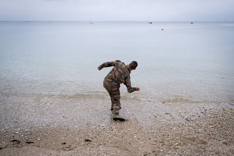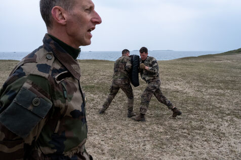 Reportage sur le stage d'aguerissement de la formation de l'Ecole militaire interarmés au Fort de Penthièvre sur la Presqu'île de Quiberon dans le Morbihan en Bretagne. L'EMIA recrute ses élèves parmi les sous-officiers et les militaires du rang selectionnes par concours. Les eleves-officiers suivent une formation de deux ans. A l'issue de la première année, ils sont nommés au grade de sous-lieutenant, puis de lieutenant a la fin de la seconde année.