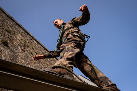 Report on the Inter-Army Military School (EMIA) training course at Fort Penthièvre on the Quiberon peninsula in Morbihan, Brittany. The EMIA recruits its students from among non-commissioned officers and enlisted personnel selected by competitive examination. Officer cadets follow a two-year training programme. At the end of the first year, they are appointed to the rank of second lieutenant, then lieutenant at the end of the second year.