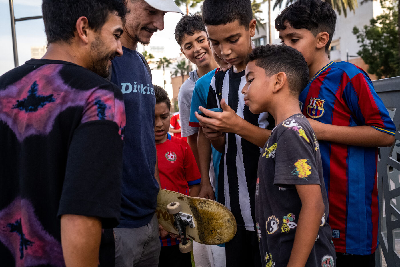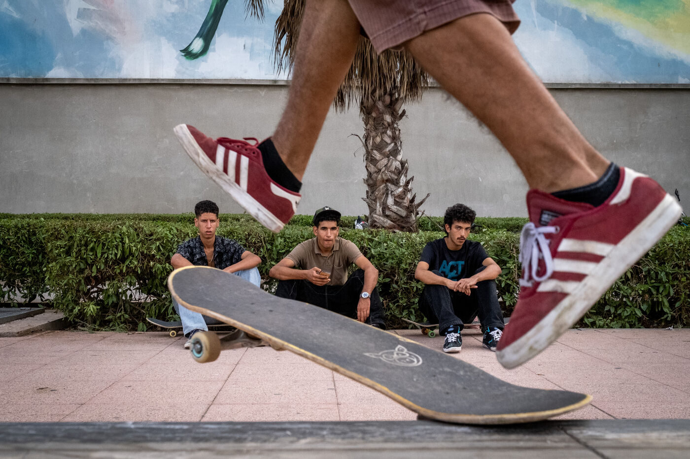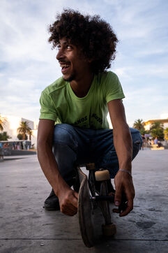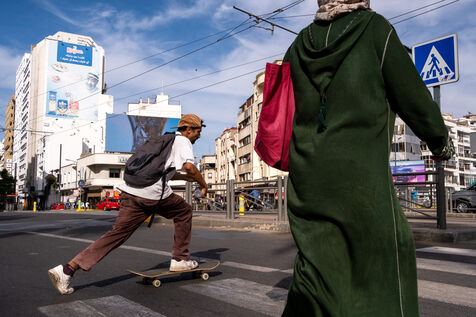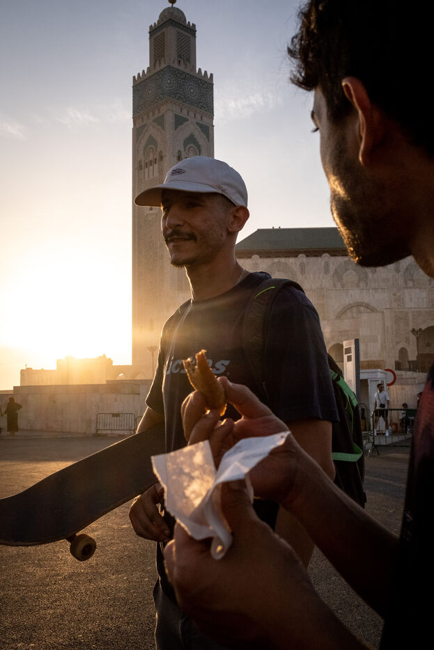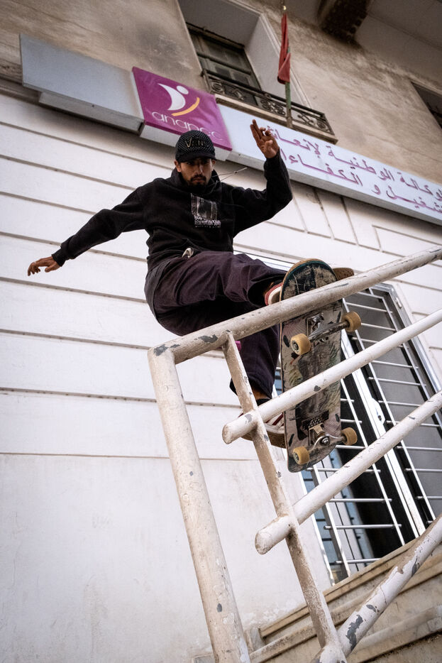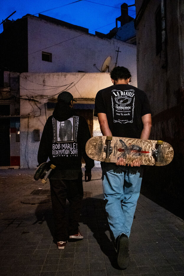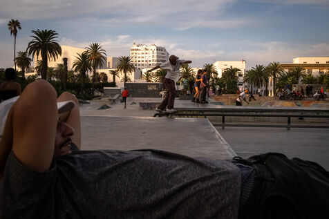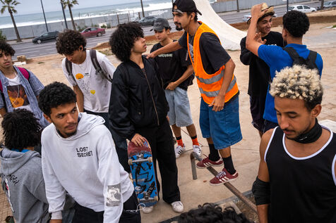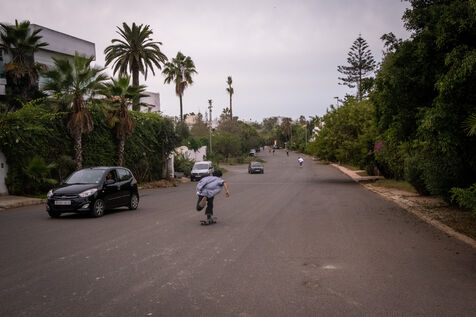 It's 5.30 p.m. in Casablanca, and the huge Nevada skatepark is bustling with more than fifty happy children on scooters and rollerblades. Now considered to be the biggest skatepark on the African continent, this space is a lively place for families and young people. On the side, Ayoub, Yassine, Akram, Mouad, Oussama and the others skate, as they do almost every day. These passionate young people devote almost all their time to skateboarding.