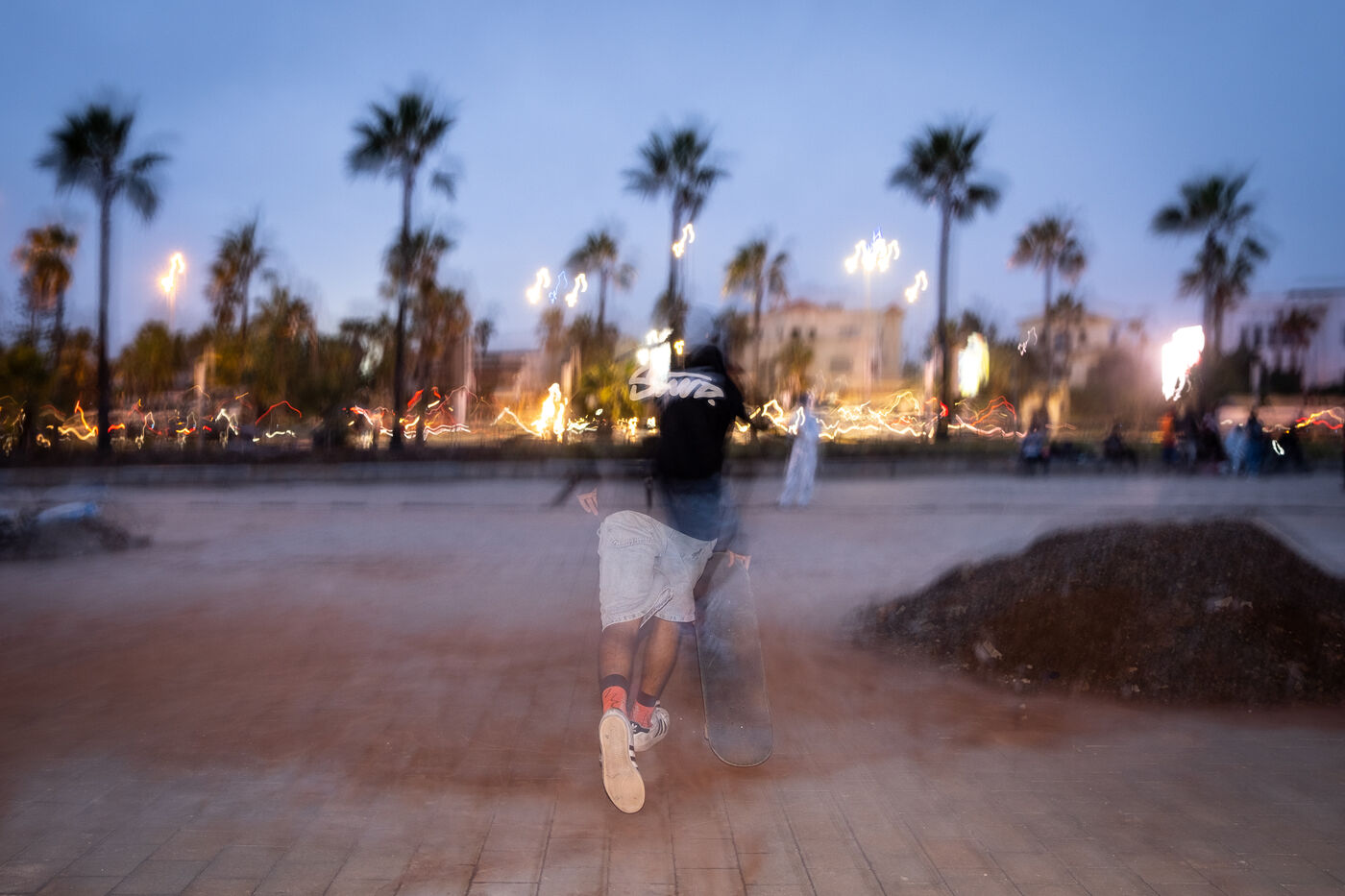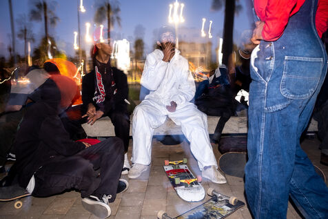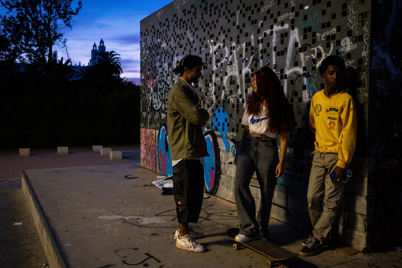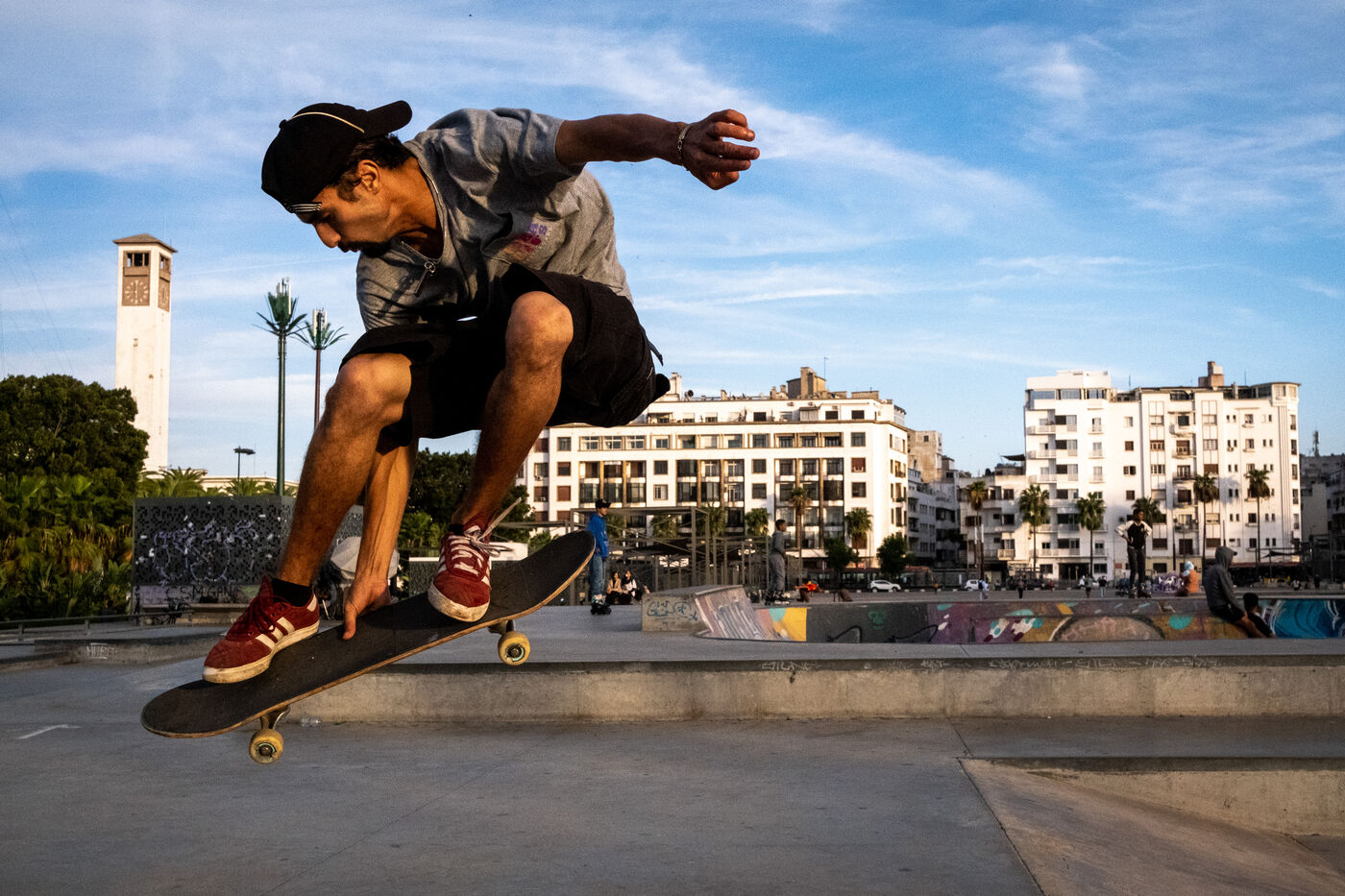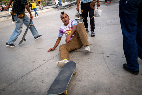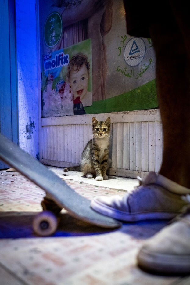 It's 5.30 p.m. in Casablanca, and the huge Nevada skatepark is bustling with more than fifty happy children on scooters and rollerblades. Now considered to be the biggest skatepark on the African continent, this space is a lively place for families and young people. On the side, Ayoub, Yassine, Akram, Mouad, Oussama and the others skate, as they do almost every day. These passionate young people devote almost all their time to skateboarding.
