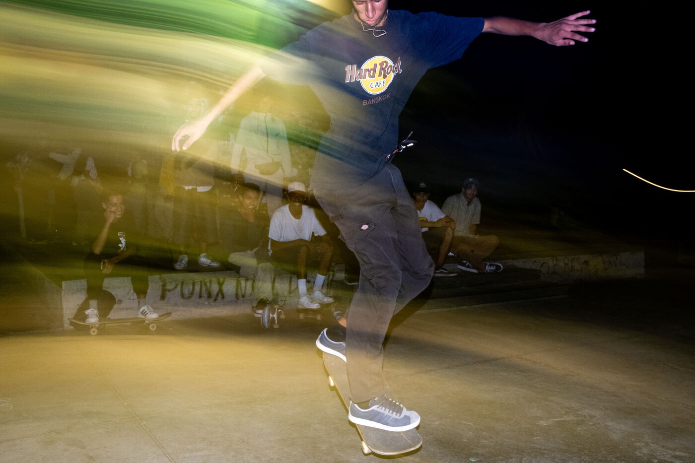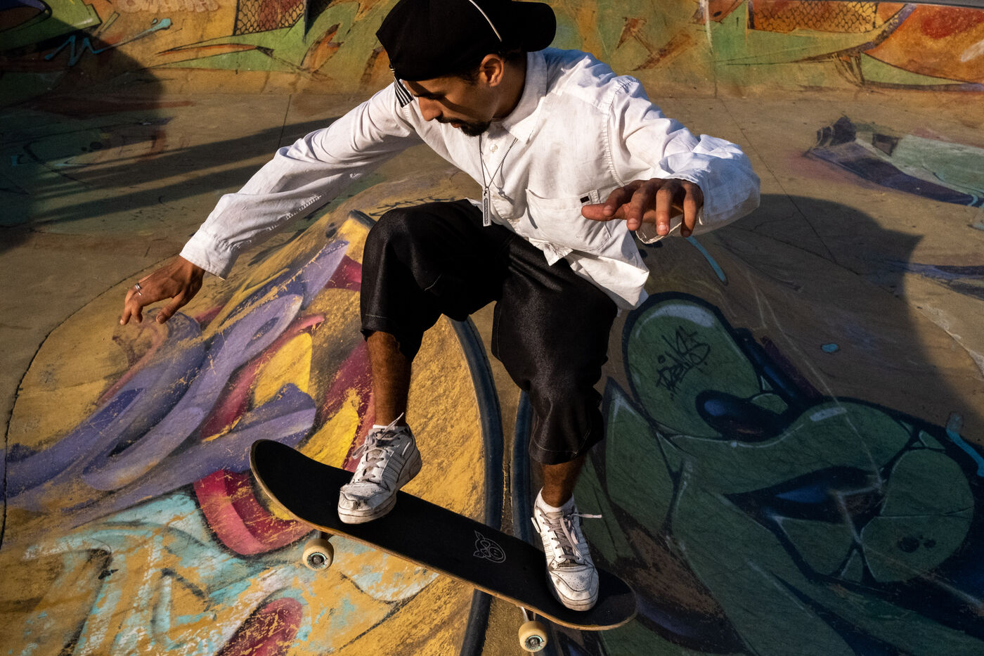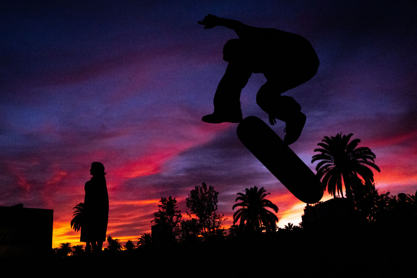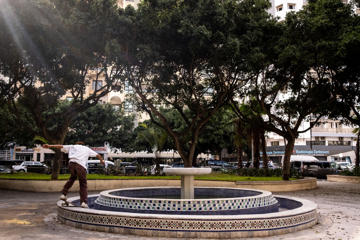 It's 5.30 p.m. in Casablanca, and the huge Nevada skatepark is bustling with more than fifty happy children on scooters and rollerblades. Now considered to be the biggest skatepark on the African continent, this space is a lively place for families and young people. On the side, Ayoub, Yassine, Akram, Mouad, Oussama and the others skate, as they do almost every day. These passionate young people devote almost all their time to skateboarding.