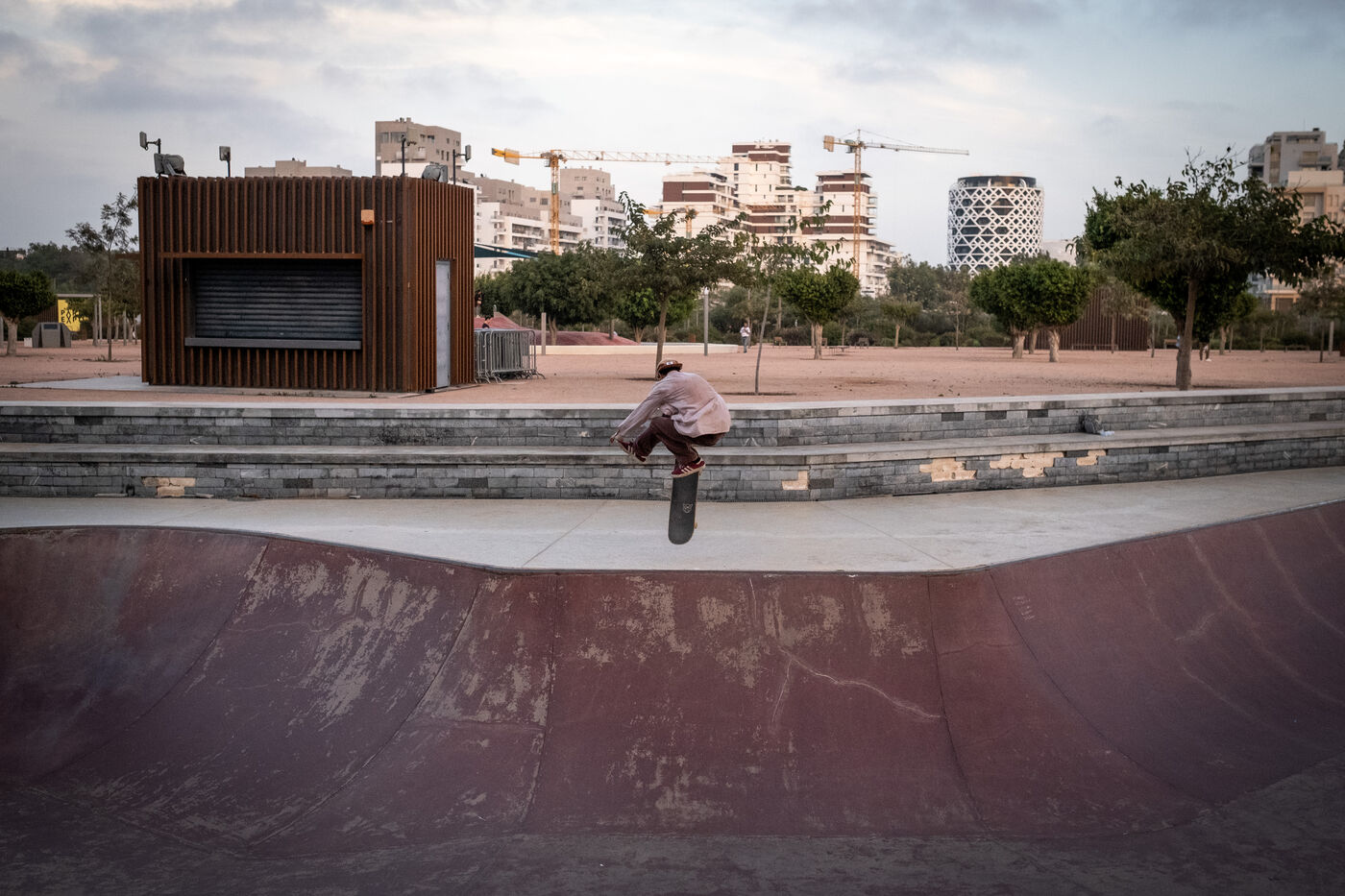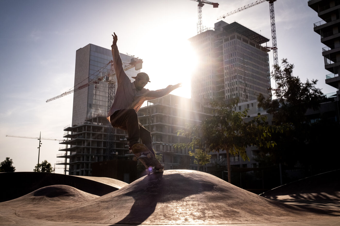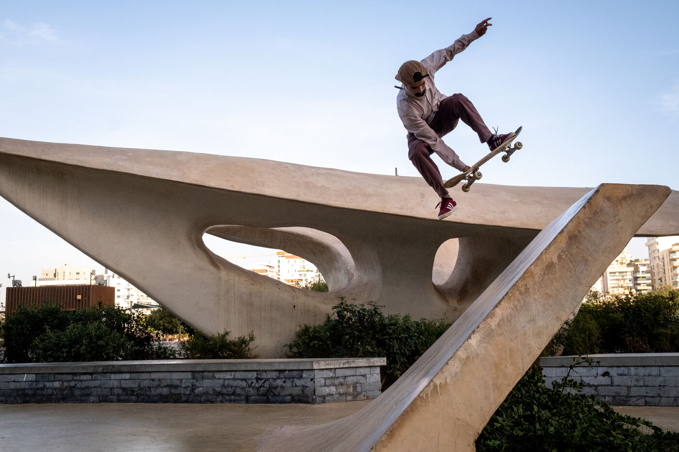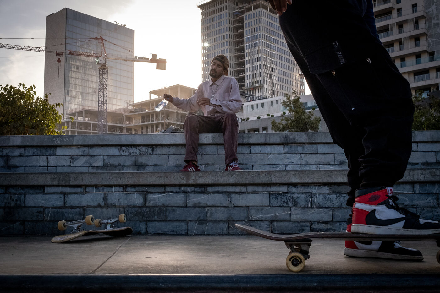 À Anfa au sud de Casablanca, les tours de verre sortent de terre à vue d'oeil. Un nouveau quartier hyper moderne abritant Casa Finance city, l'une des plus importantes places financières d'Afrique, est en train de voir le jour. C'est dans cet espace appelé Anfa Park que les skaters ont pu apprécier la construction d'un nouveau grand skatepark en 2020 faisant de Casablanca une ville propice à la pratique du skate. Il manque néanmoins un réel écosystème de la discipline comme le rappelle Akram : « il n'y a pas de marque, de sponsor ou de compétition qui pourrait nous permettre d'avoir de réelles ambitions grâce au skateboard. Nous n'en sommes pas là. La plupart d'entre nous pratiquent le skate comme une échappatoire à nos problèmes de vie, voir même à nos propres problèmes de santé mentale. » Ayoub qui lui skate pratiquement tous les jours depuis plus de six ans le rejoint sur ce point. Également compositeur musical, il porte un regard sentimental sur le développement de Casablanca : « je vois la ville évoluer, aussi d'un point de vue artistique, et cela me remplit de joie pour l'avenir. »