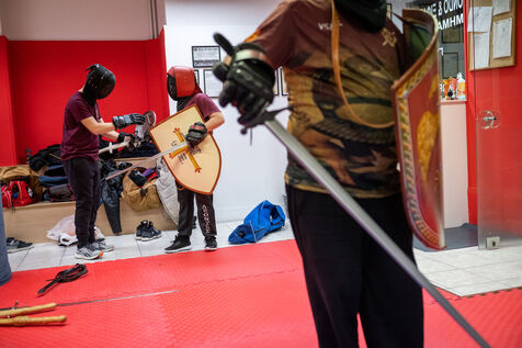 The Leontes Academy of European Historical Martial Arts in Athens is a school where students of all ages learn ancient Greek and Byzantine combat techniques using weapons, shields, armour and phalanxes. To do this, they have studied numerous historical texts, military manuals and artefacts from the period. As well as learning the fighting techniques involved in a sport similar to fencing, they are beginning to produce historical reconstructions.