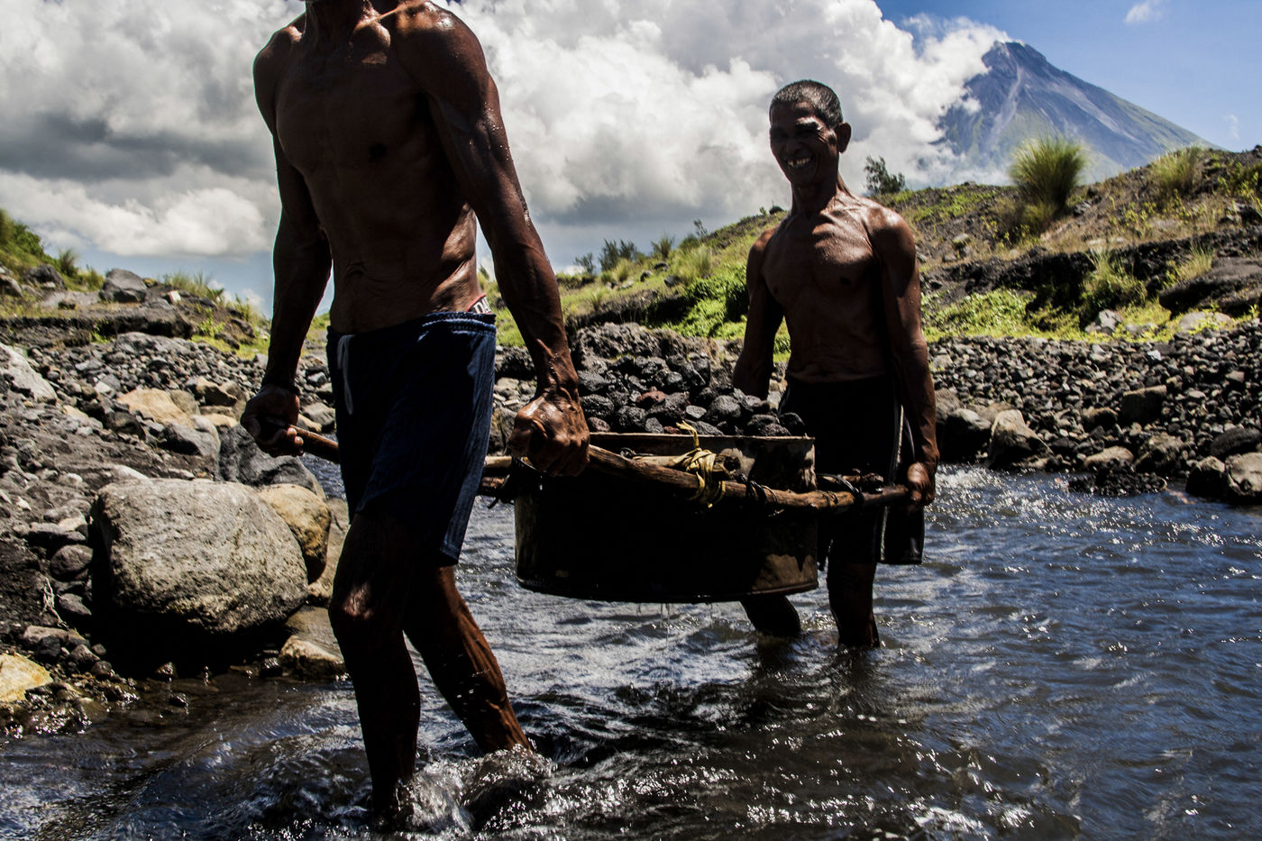After a long way crossing an isolated jungle, it is possible to reach the village of Magapo, located at the foot of the volcano. It is here that Amalia Ansing, mother of four, tells her story. She evokes the difficulties of living near a volcano; the released ashes oblige them to cover their airways as well as they destroy their sweet potato plantations that provide an important source of income. In addition they have experienced light earthquakes but the biggest issue remains to be the access to water. Since they live in a high location, wells of water have evaporated several years ago and they are constrained to find water strictly from waterfalls.