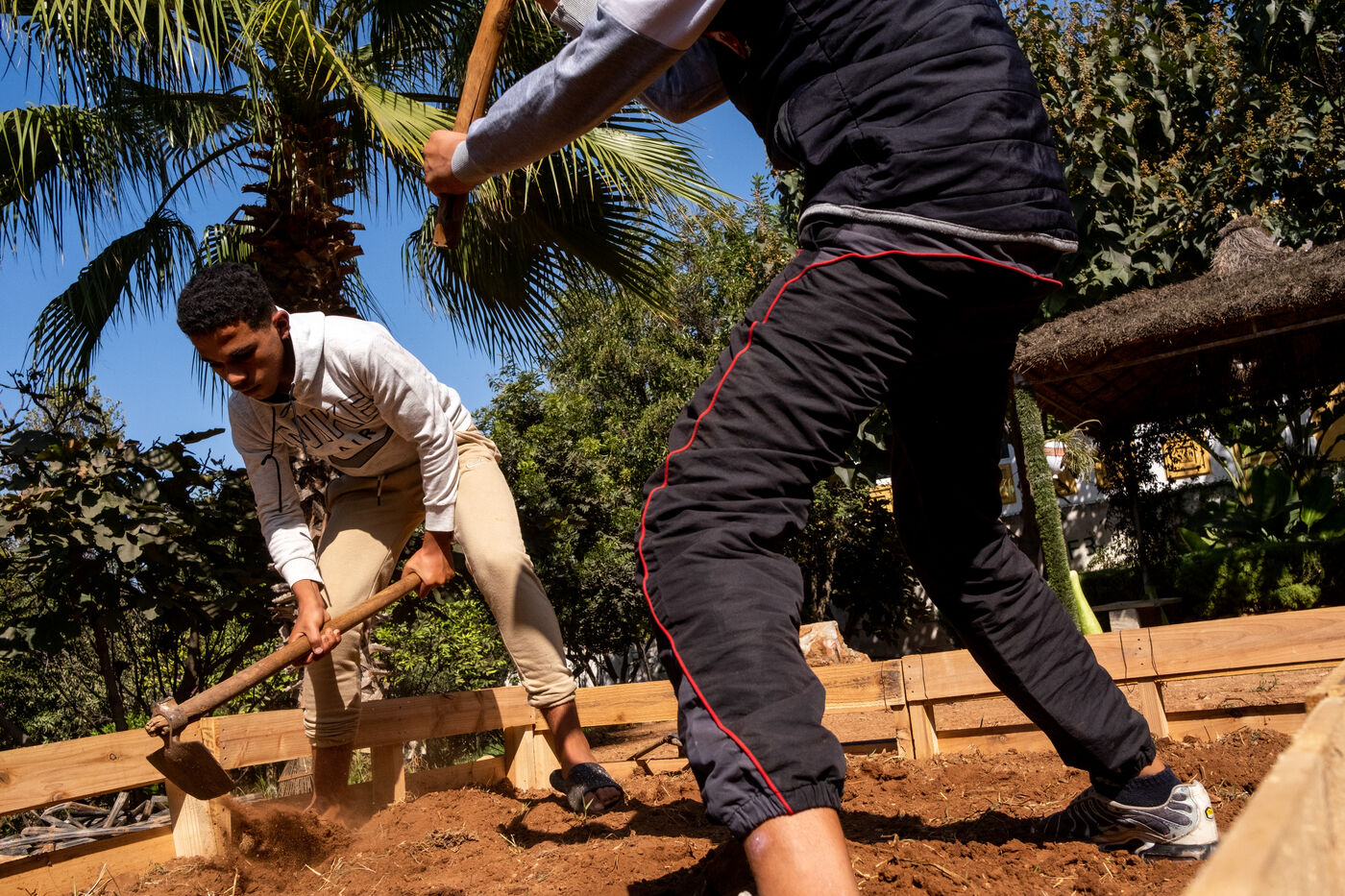 Firstly, the permaculture vegetable garden of the Oum Keltoum Social Foundation in the working-class district of Sidi Moumen. Next, we visit Catherine, who is developing a vertical vegetable garden in the garden of her house, and Ingrid and Hadj, who have a large henhouse with around a hundred chickens on the roof of their house in the Anfa district. We continue at the Ain Chock Faculty of Science (FSAC), which is experimenting with an educational garden irrigated with water from a wastewater treatment plant using a plant filter. Finally, the Forêt Comestible, a huge permaculture vegetable garden at Lycée Lyautey.