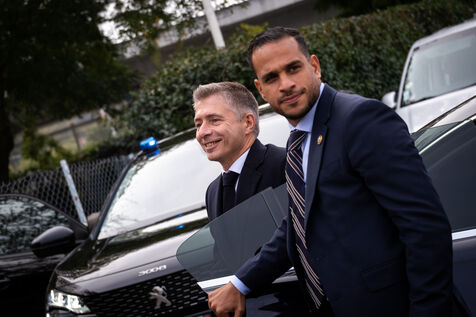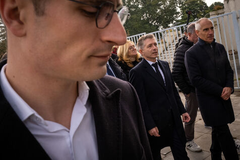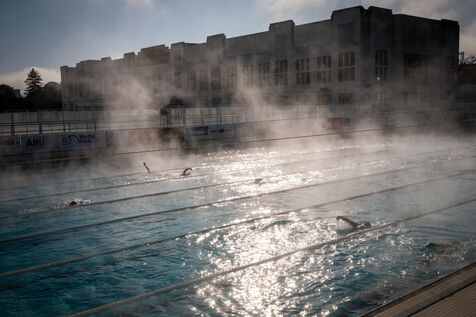 Gil AVÉROUS, Minister for Sport, Youth and the Voluntary Sector, visits the Alfred Nakache swimming pool to watch the Toulouse Olympique Employés Club (TOEC) Dauphins train with Léon MARCHAND, four-time Olympic champion at Paris 2024.