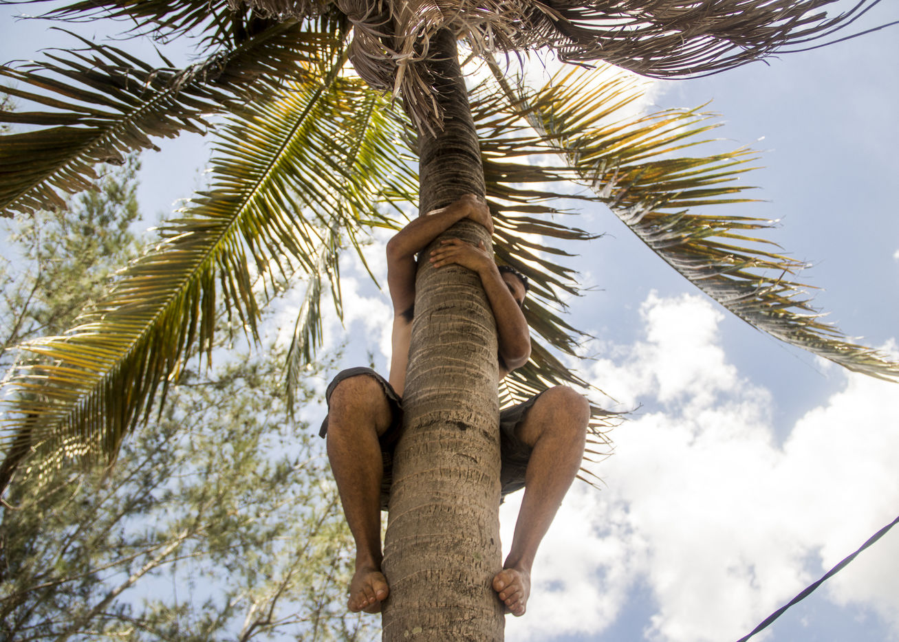 Leur père partant au large la journée, les enfants pratiquent également la pêche avec leurs propres moyens. Ils guettent les crabes qui déambulent pour les attraper, enfilent masque et tuba pour aller harponner quelques petits poissons, ou se servent d'un petit bout de fil de pêche et d'un hameçon.
