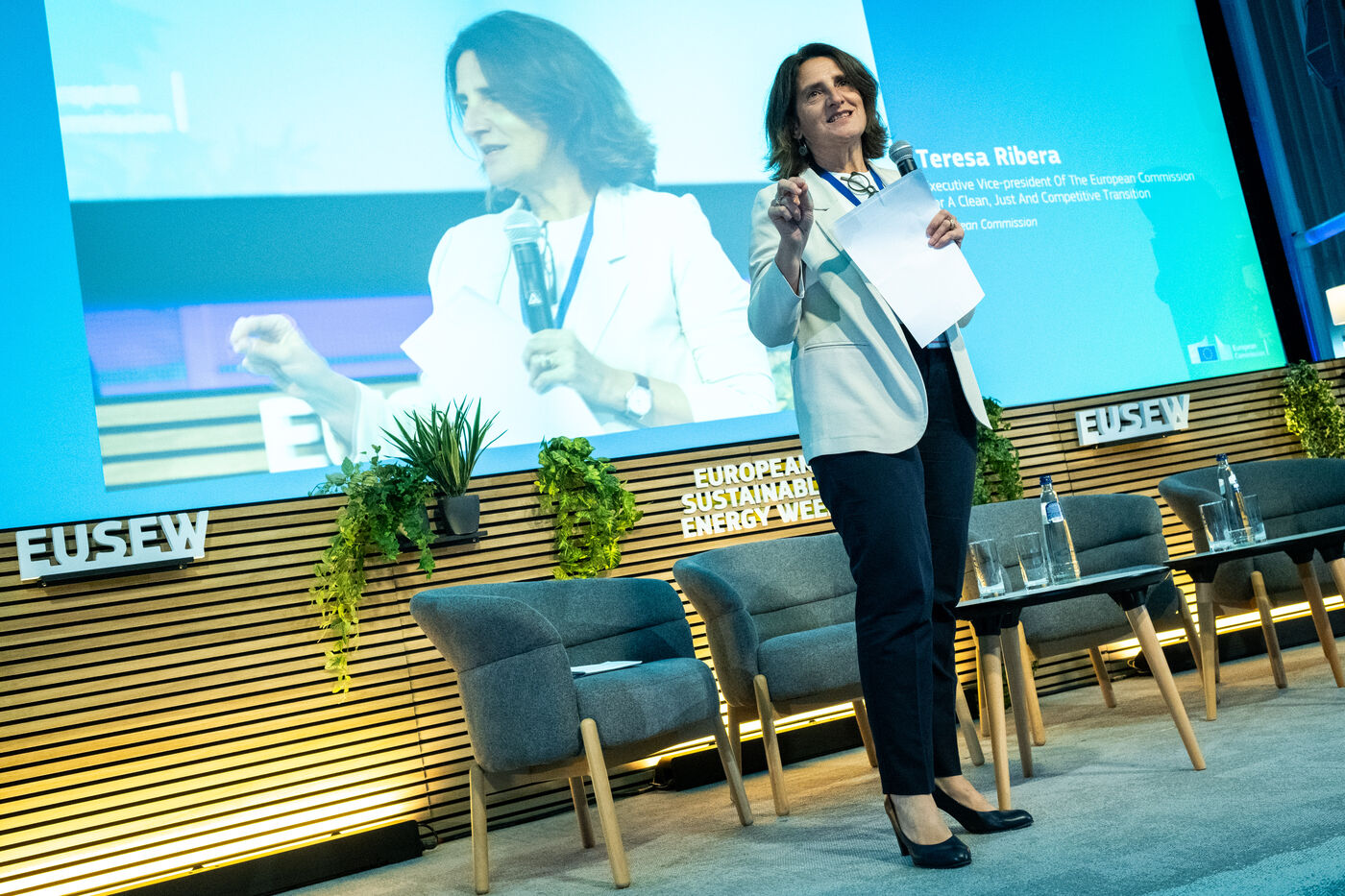 Vice-President of the European Teresa Ribera and European Commissioner Wopke Hoekstra participate at the EU Sustainable Energy Week. The EU Sustainable Energy Week (EUSEW) brings together more than 10 000 participants from a broad range of sectors including policymakers industry representatives businesses civil society organisations and citizens for a 3-day policy conference centred around Europe s competitive clean and fair energy transition.