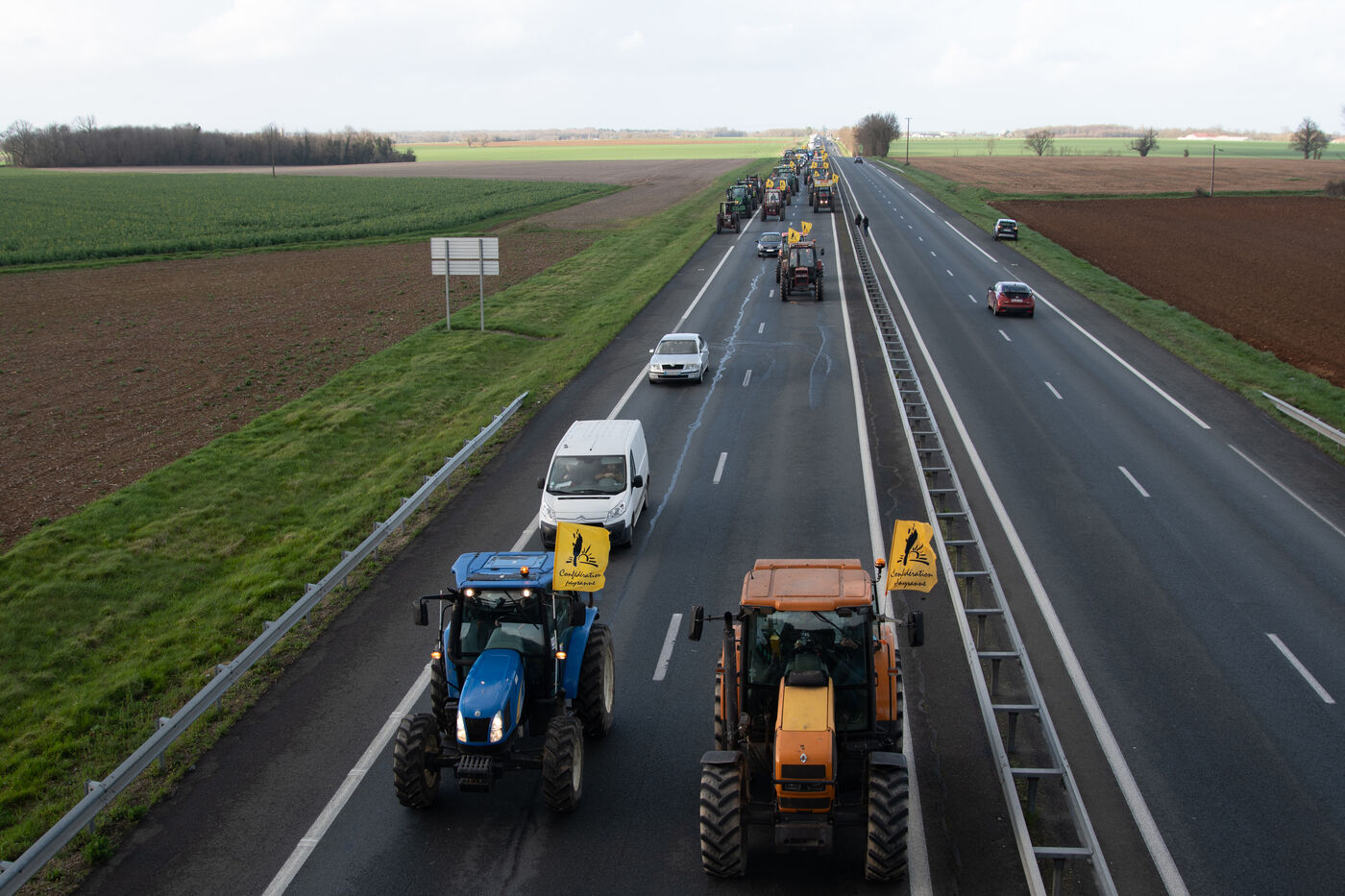 Des dizaines de tracteurs ont pris la route le 24 mars 2023 pour se rendre à Vanzay dans les Deux Sevres pour se rendre au week end de mobilisation contre les méga-bassines. Le convoi a été arreté vers la sortie 41 de la nationale 10 par les forces de l'ordre, avant de continuer son parcours.