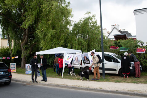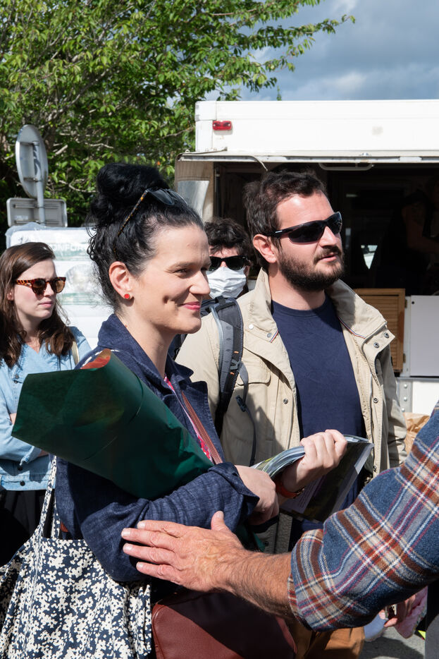 Melanie Thomin, candidate NUPES aux legislatives de la circonscription Carhaix-Chateaulin (Finistere) est au marché de Daoulas le dernier week-end avant les élections.