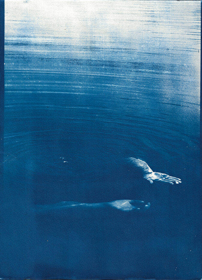 Sa couleur, c'est le bleu. Les Vagues sont bleues. Les cyanotypes sont bleus. Ses activités favorites : nager, flotter et naviguer dans le bleu - des vagues. Une série sur les vagues, le mouvement, la liberté, le bleu et sur lui.