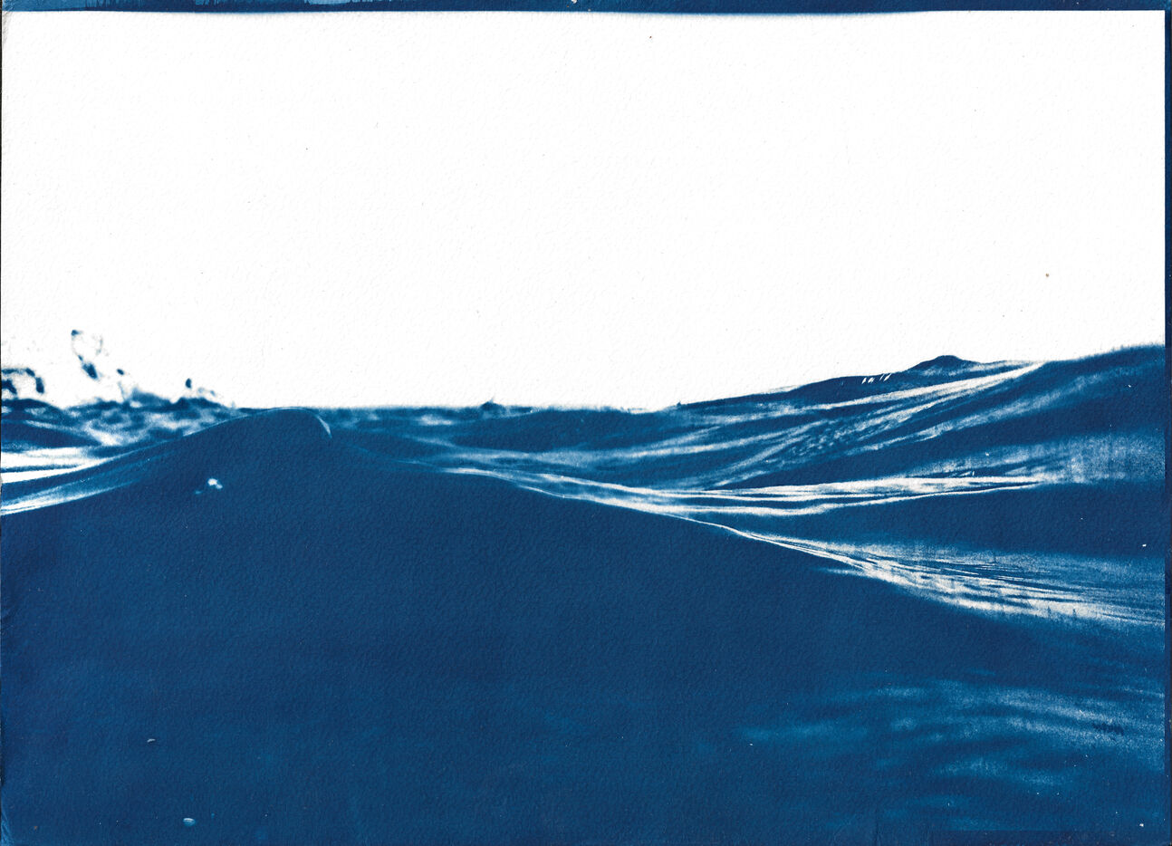 Its colour is blue. Waves are blue. Cyanotypes are blue. His favourite activities: swimming, floating and sailing in the blue - of the waves. A series about waves, movement, freedom, blue and himself.