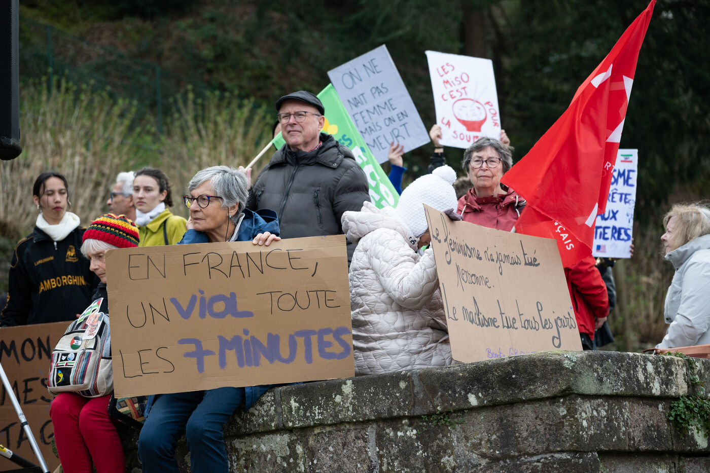 Manifestation féministe pour l’égalité entre les femmes et les hommes a Quimper dans le cadre de la journée internationale de lutte pour les droits des femmes du 8 mars 2025.