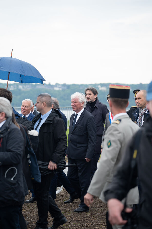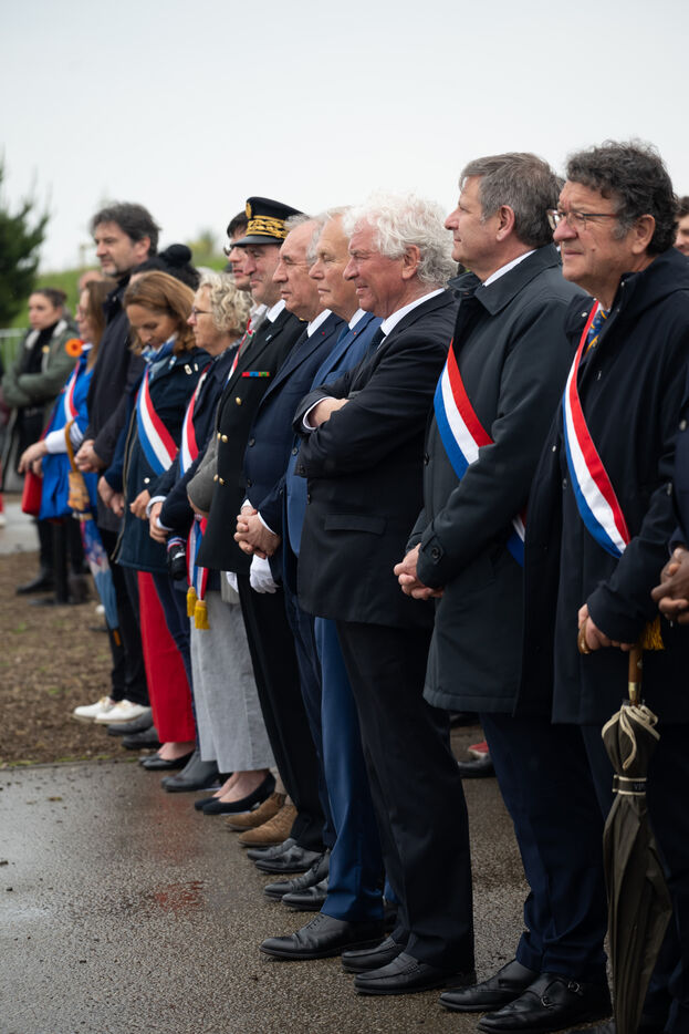 Cérémonie à l'occasion de la Journée nationale des mémoires de la traite, de l'esclavage et de leurs abolitions en présence du premier ministre François Bayrou à Brest le 10 mai 2025.