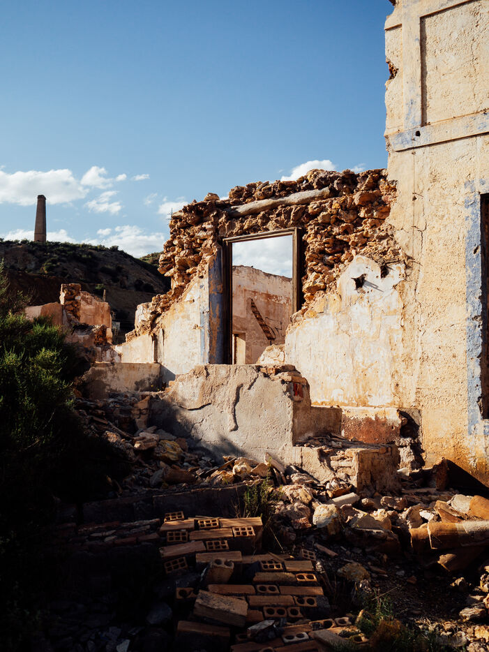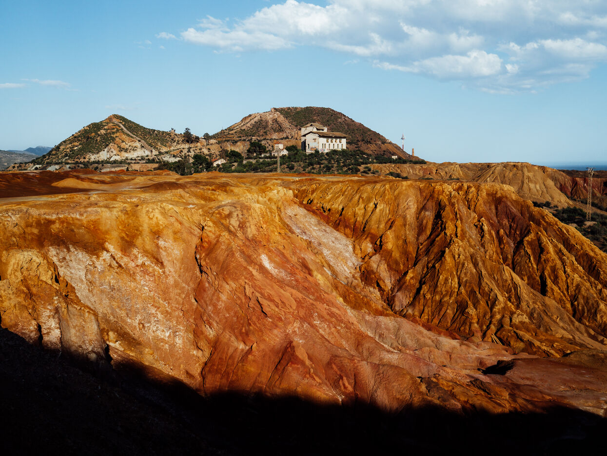 Des traces attestent de l'exploitation de gisements dans la région de Mazarron déjà à l'époque romaine. Aux 19e siècle l'industrie minière réapparait dans cette ville située au sud est de l'Espagne dans la province de Murcie. Portée par les investissement étrangers, la commune se développe rapidement. Mais au début du 20e siècle, la mine amorce son déclin. Le prix du plomb baisse et les filons s'épuisent. La Guerre Civile espagnole impacte l'économie. L'endroit est abandonné dans les années 60 et laissé à la merci des éléments. Aujourd'hui encore, le paysage garde la marque de cette exploitation. Ruines de bâtiments, flaques flamboyantes et terre craquelée donnent au lieu un air apocalyptique. Un terrain devenu stérile qui illustre l'impact écologique des activités humaines.