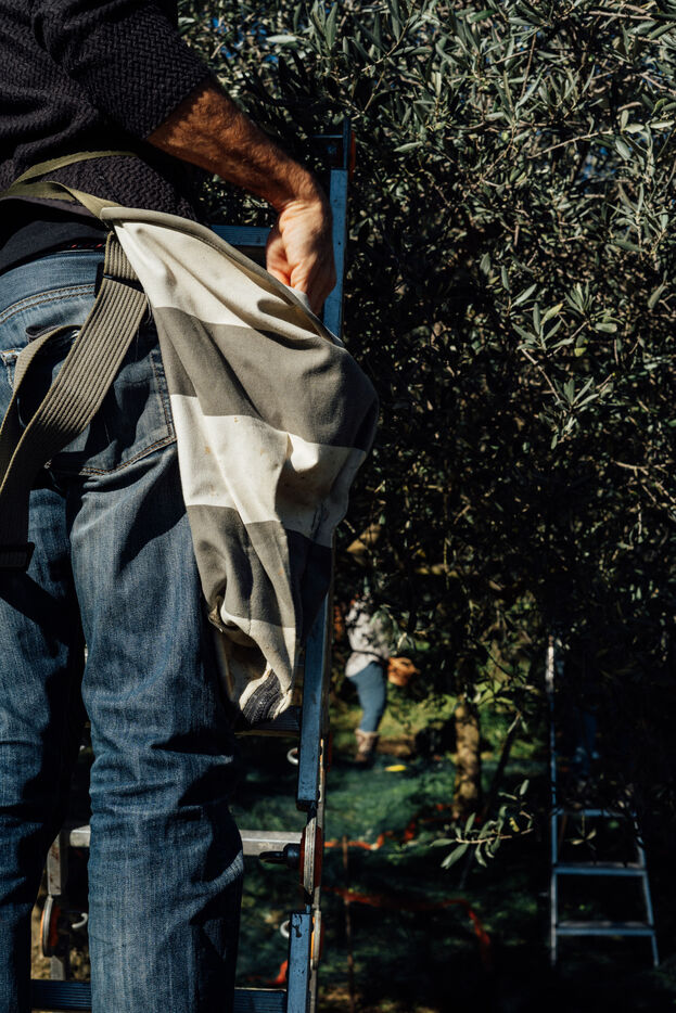 France, Forcalquier, 2023. Every year, they gather with friends and family to share the moment of the olive harvest. On this small, sloping plot of land, they pick the fruit by hand, one by one. A suspended moment, between meditation and chit-chat, where the most important thing is to be together.